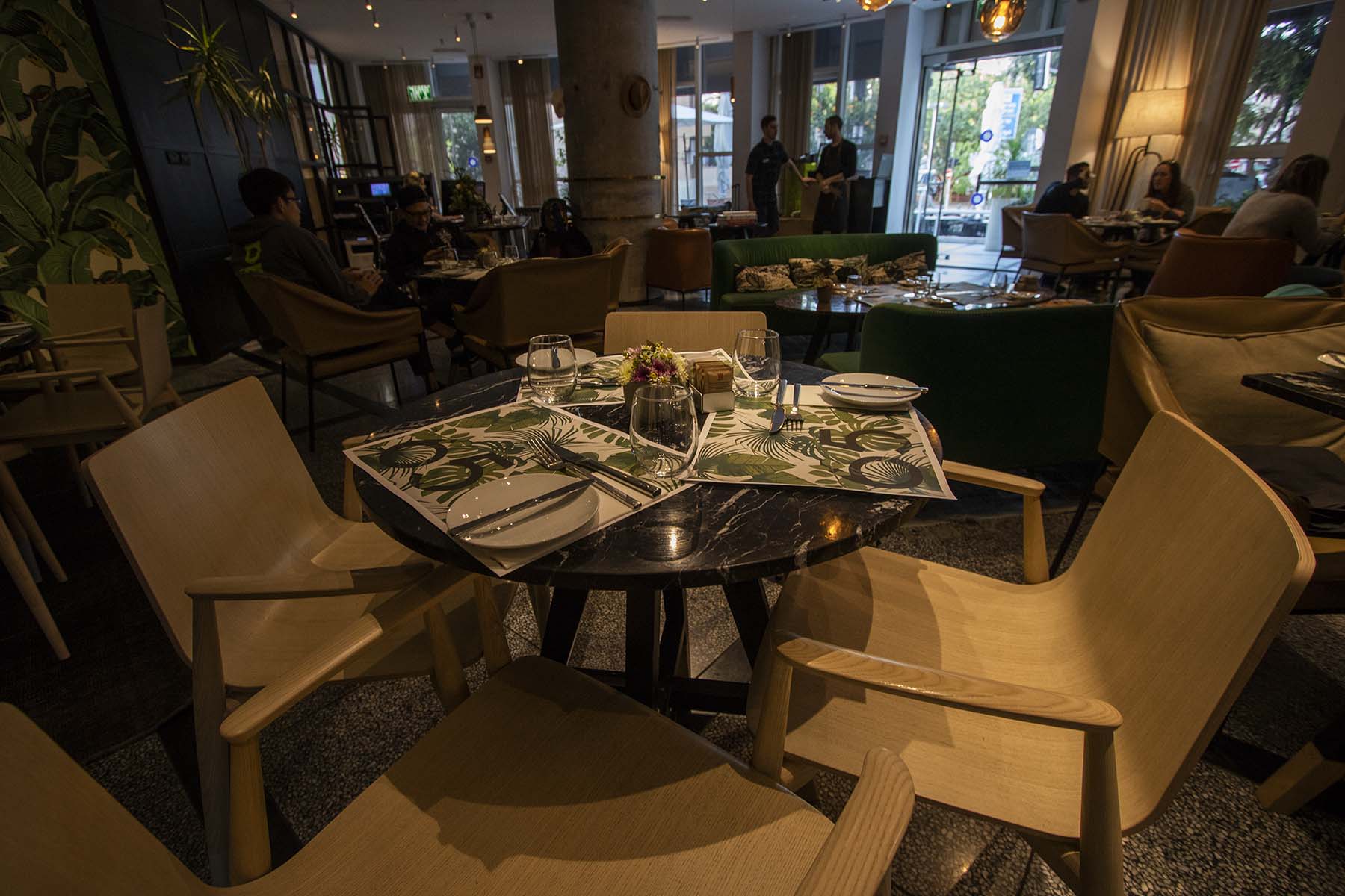 IMG_8590DiningFoyer Published January 6, 2019 at 1800 × 1200 in 65 Hotel Rothschild, Tel Aviv Cafe 65 ready for breakfast, 65 Hotel Rothschild, Tel Aviv