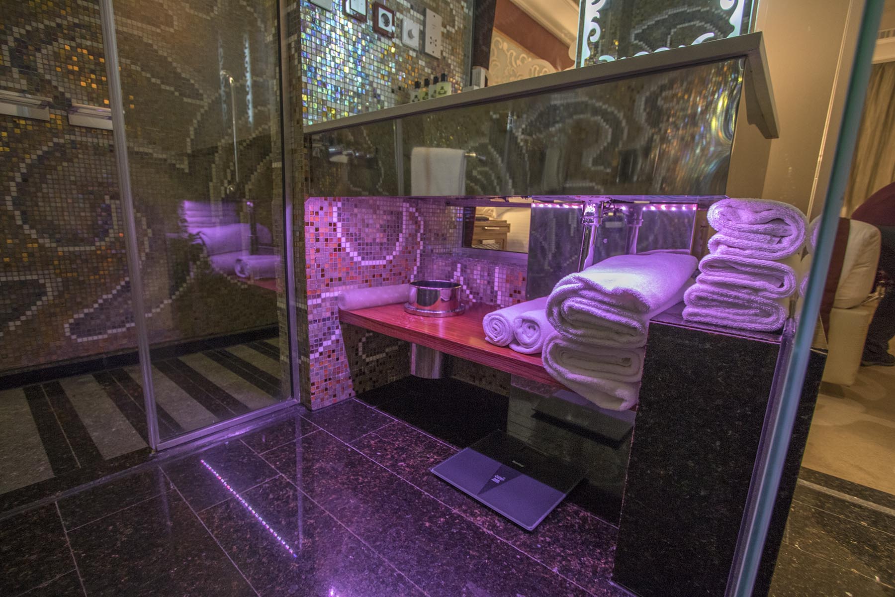 IMG_3364Bathroom Published July 16, 2018 at 1800 × 1200 in InterContinental Cairo Citystars Coloured lighting under the bathroom sink, executive room, InterContinental Cairo Citystars