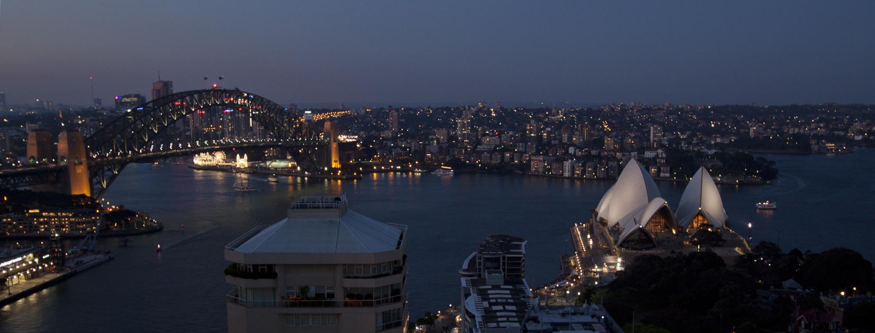 IMG_8719OPeraHs Published November 18, 2014 at 1783 × 680 in InterContinental Sydney Sydney Harbour Bridge & Opera House from the Intercontinental Sydney, twilight