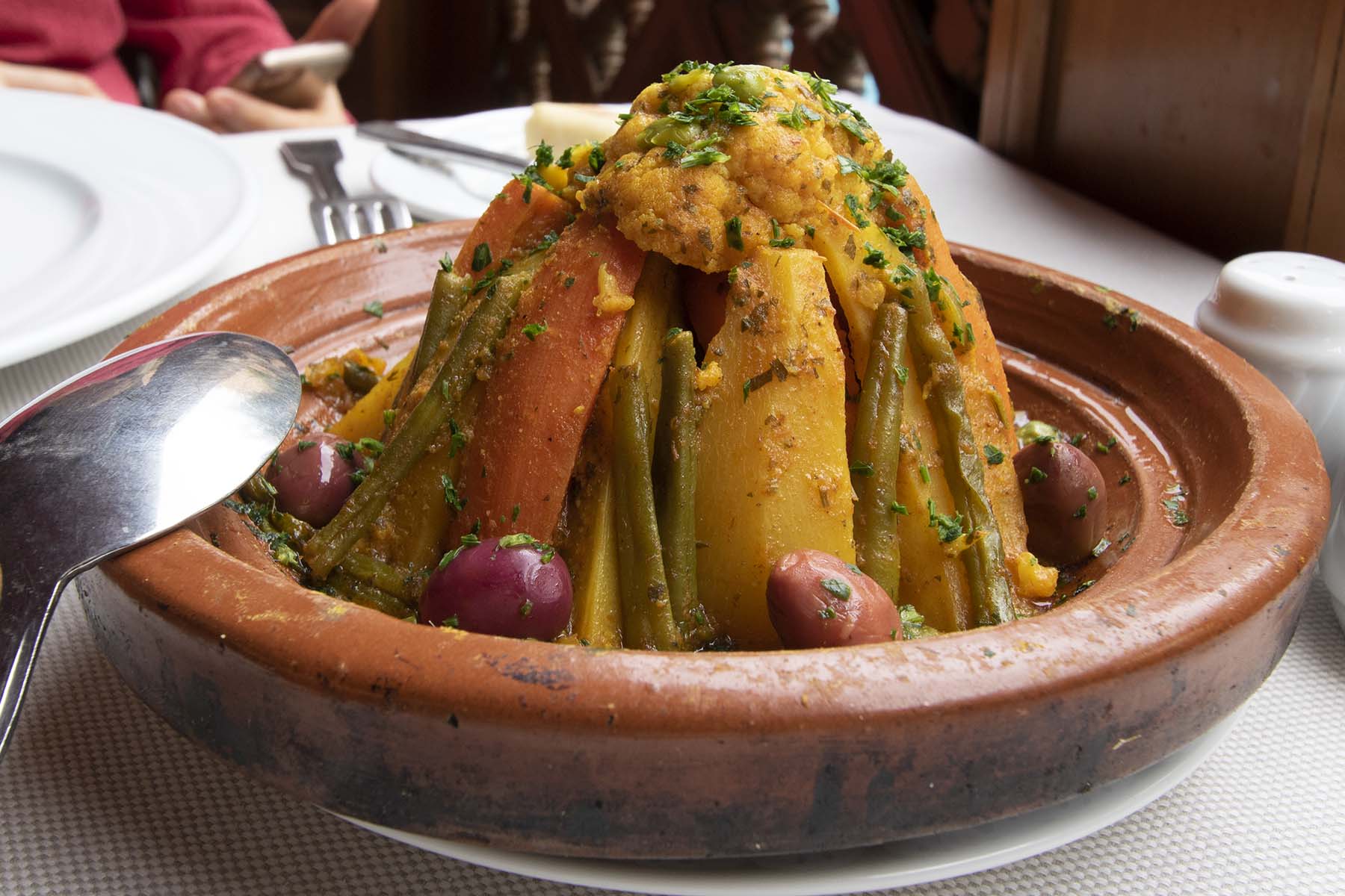 IMG_0448Targine Published January 12, 2020 at 1800 × 1200 in La Maison Arabe, Marrakech Berber vegetable tagine for lunch, Le Restaurant at La Maison Arabe, Marrakech