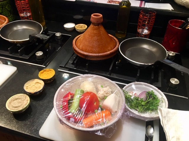 IMG_8018 Published January 12, 2020 at 640 × 480 in La Maison Arabe, Marrakech Cooking station prep ready, cooking class at La Maison Arabe, Marrakech