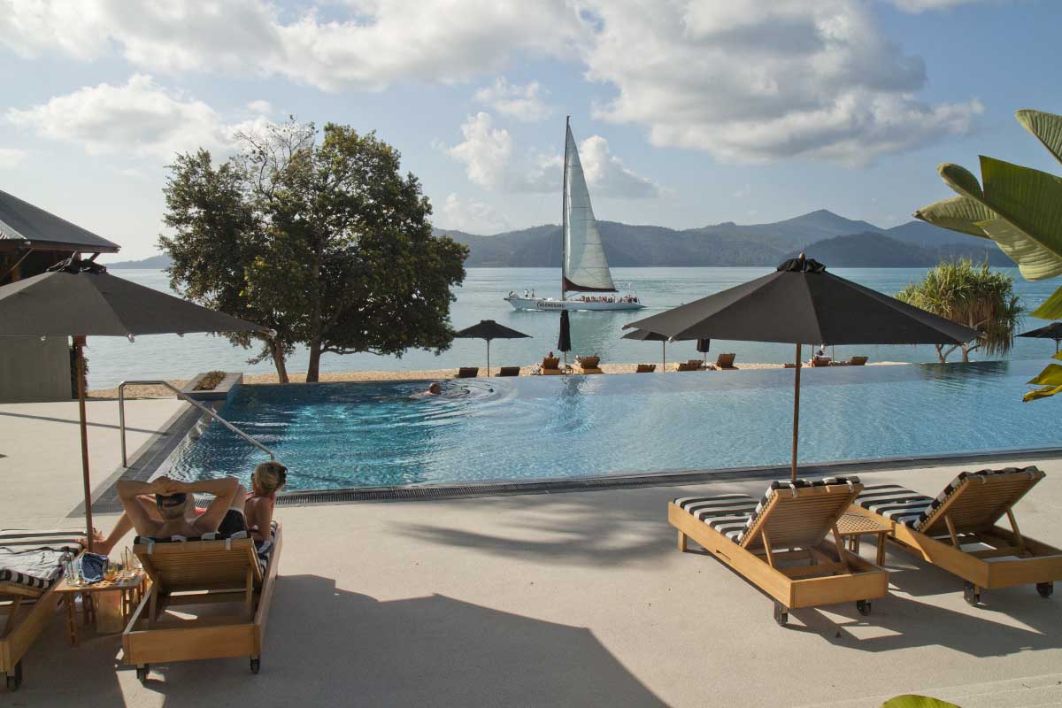 IMG_6216ByThePool Published September 27, 2013 at 1200 × 800 in qualia Resort, Hamilton Island Passing yacht at Pebble Beach, qualia