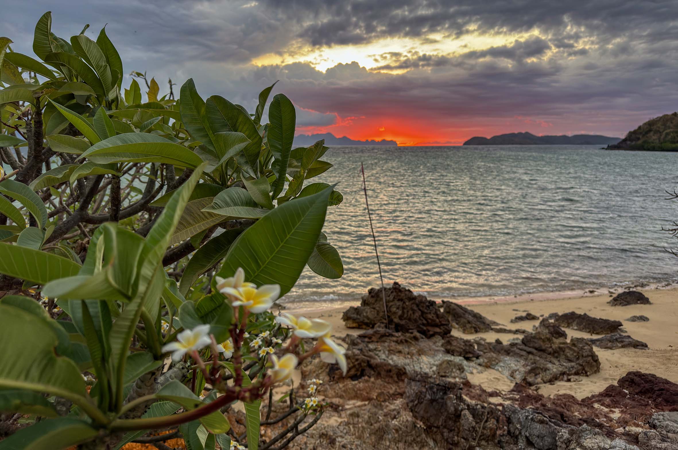 IMG_0867 SunriseTS#2RED Published July 8, 2024 at 2362 × 1569 in Two Seasons Coron Island Resort, Palawan Islands Fiery sunrise from the Sandbar Bungalow at Two Seasons Coron Island Resort, Manila, Philippines