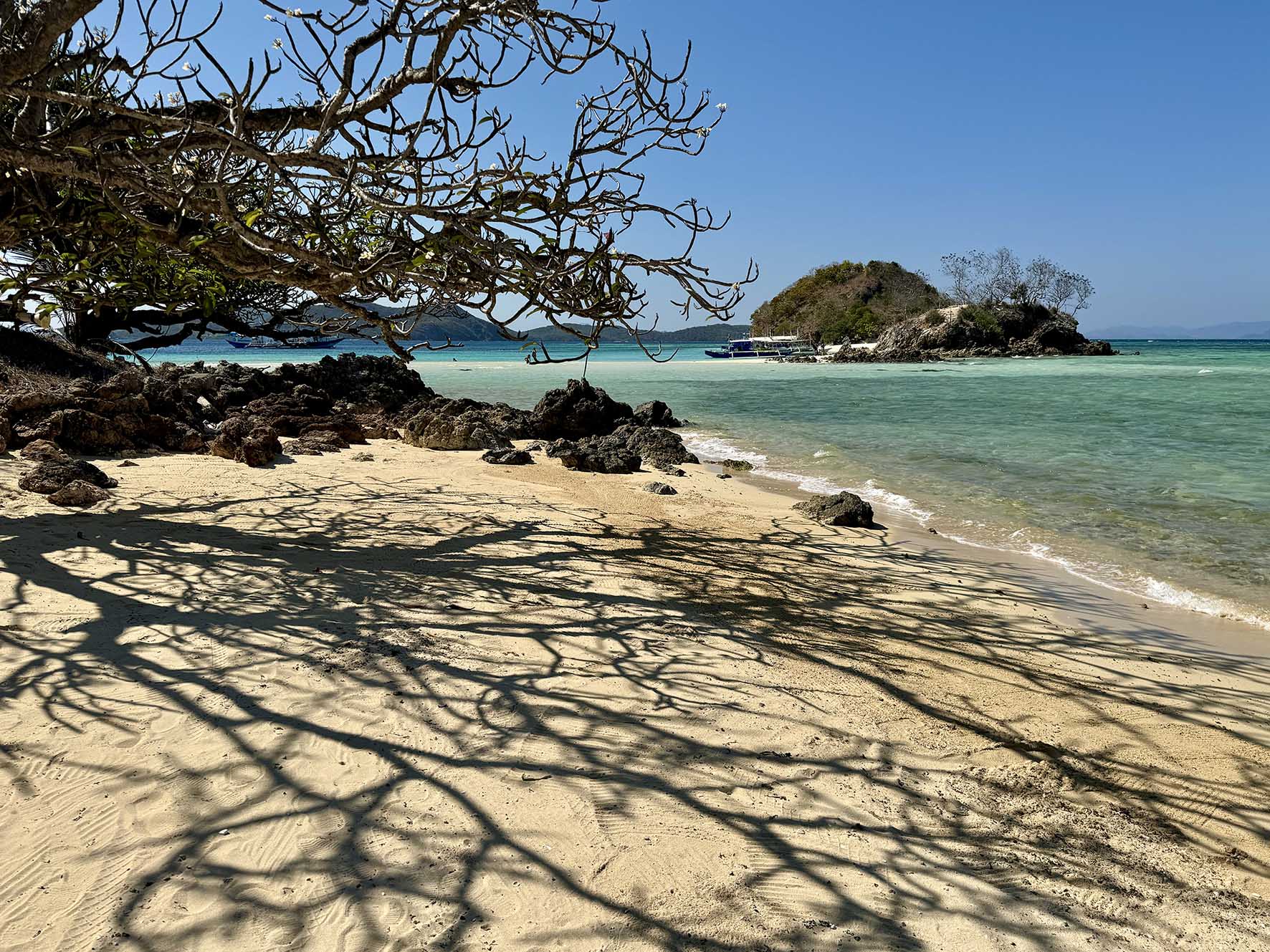 IMG_4055BranchShadows Published July 9, 2024 at 1772 × 1329 in Two Seasons Coron Island Resort, Palawan Islands View of the tiny Bulog Dos Island from our east facing beach, Two Seasons Coron Island Resort, Palawans, Philippines