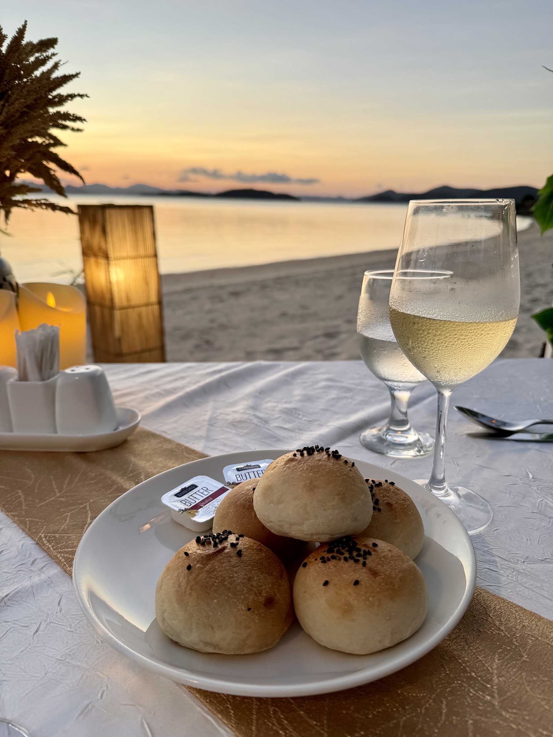 IMG_4128Buns Published July 9, 2024 at 1772 × 2362 in Two Seasons Coron Island Resort, Palawan Islands Wine and bread rolls at sunset, Two Seasons Coron Island Resort, Palawans, Philippines