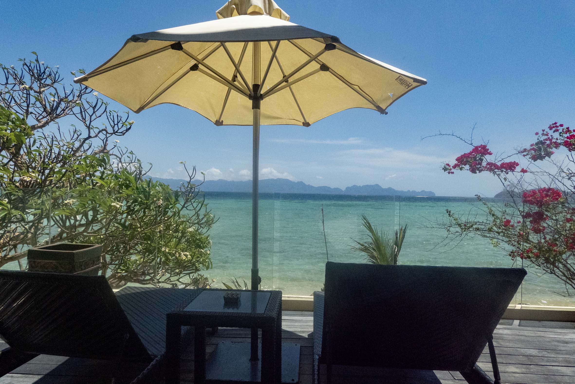 SJB02575 Deck RED Published July 8, 2024 at 2362 × 1575 in Two Seasons Coron Island Resort, Palawan Islands Eastfacing shade at Sandbar Bungalow, Two Seasons Coron Island Resort, Manila, Philippines