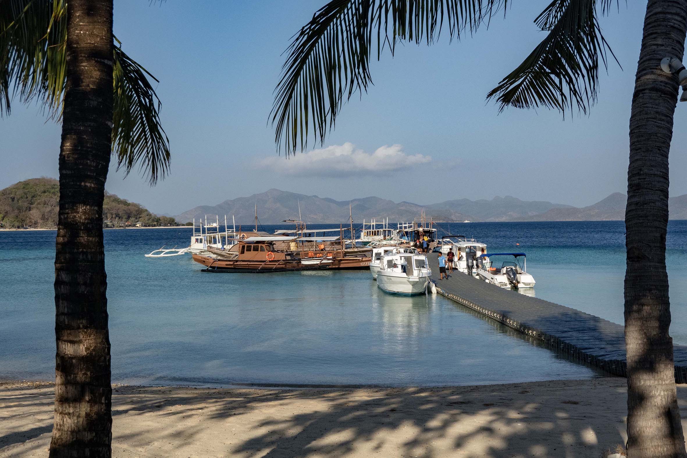 SJB02832 BoatsPalms RED Published July 8, 2024 at 2362 × 1575 in Two Seasons Coron Island Resort, Palawan Islands Morning boats, Two Seasons Coron Island Resort, Manila, Philippines