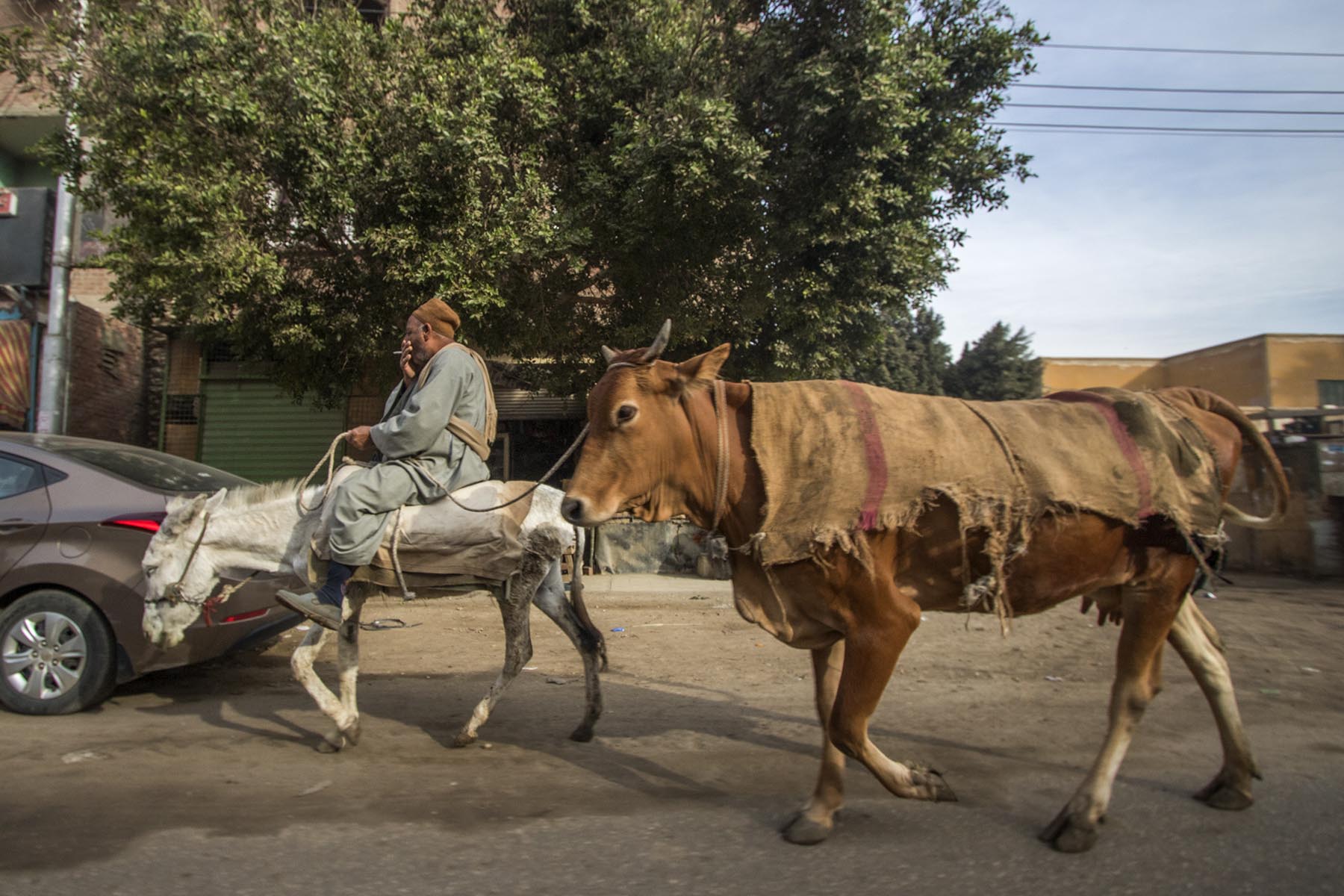 IMG_6271CowHessian Published May 16, 2018 at 1800 × 1200 in Cairo (Part 1) – Memphis, Saqqara & The Great Pyramids Cow and owner, Egypt