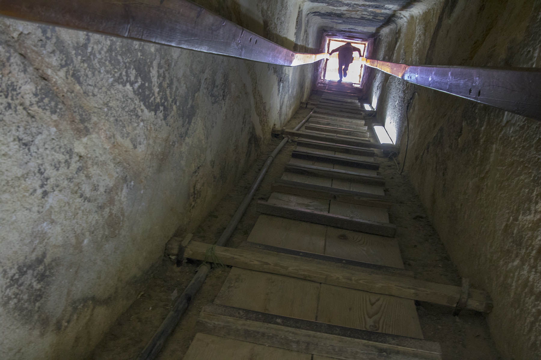 IMG_6544CrouchyTunnel Published May 16, 2018 at 1800 × 1200 in Cairo (Part 1) – Memphis, Saqqara & The Great Pyramids Exiting the Queen’s Pyramid, Giza, Egypt