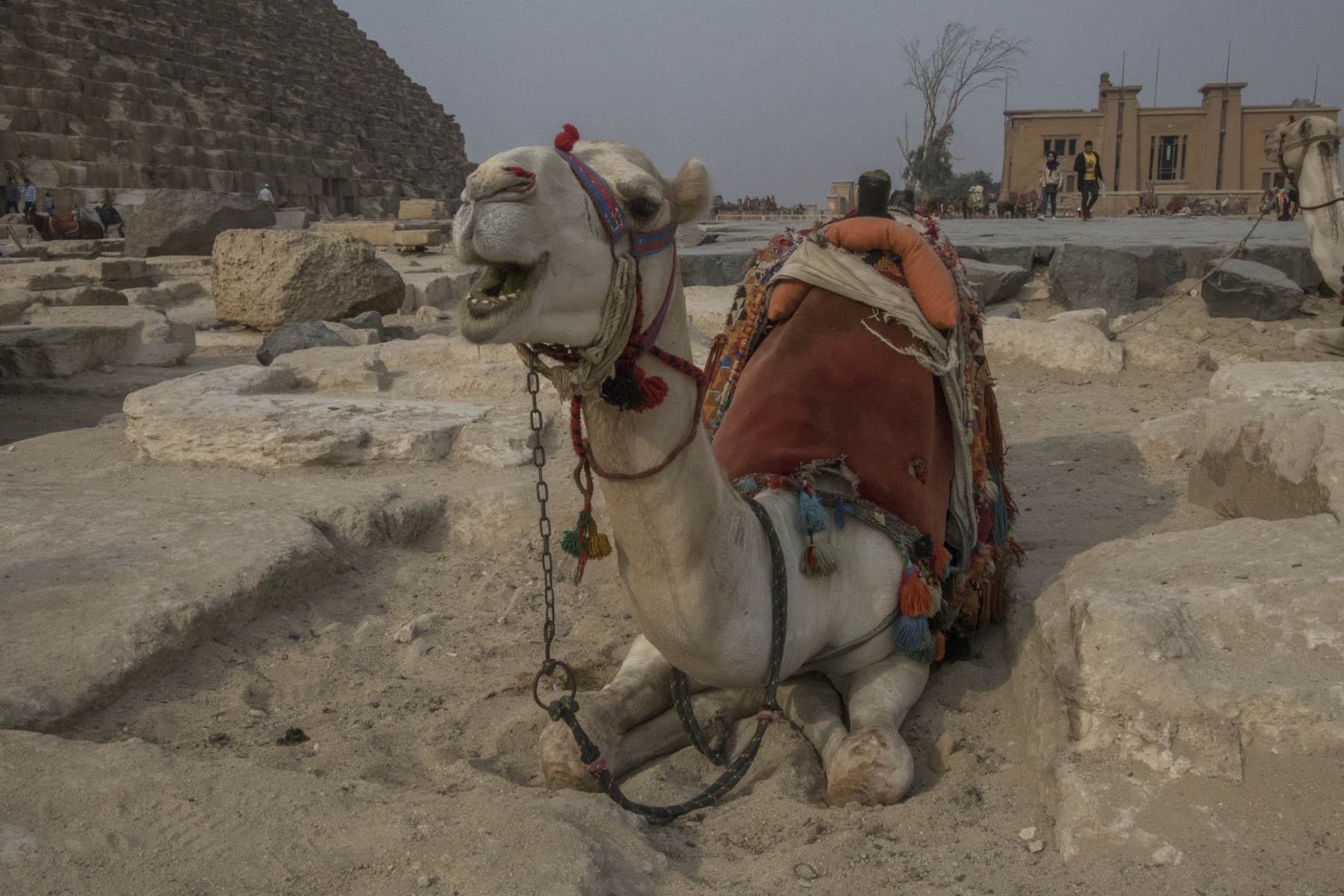 IMG_6554CamelWaiting Published May 16, 2018 at 1800 × 1200 in Cairo (Part 1) – Memphis, Saqqara & The Great Pyramids Chatty camel, The Great Pyramids of Giza, Egypt