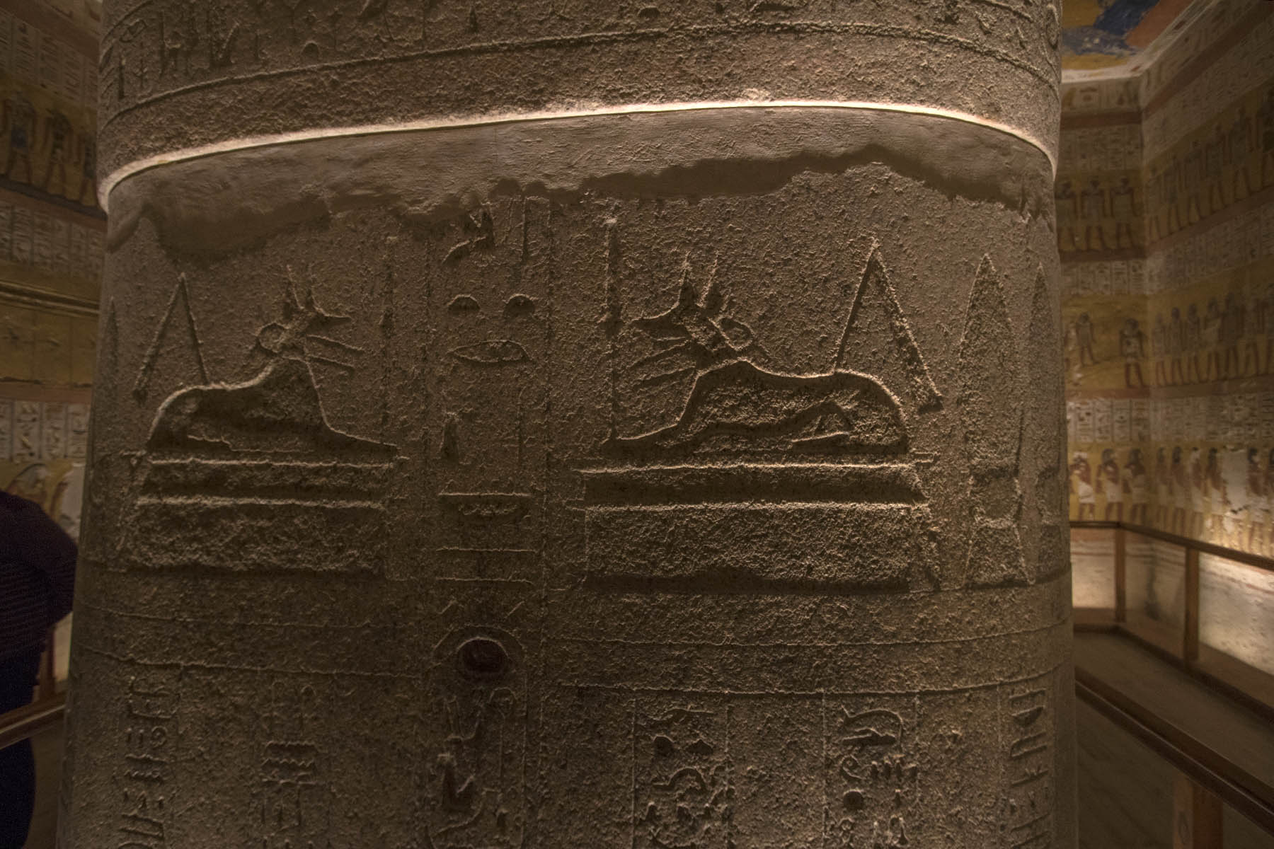 IMG_8260Anubis Published June 10, 2018 at 1800 × 1200 in Luxor (Part 2) – Valley of the Kings & Temple of Hatshepsut Carving of Anubis on the sarcophagus of Rameses IV, Valley of the Kings, Luxor