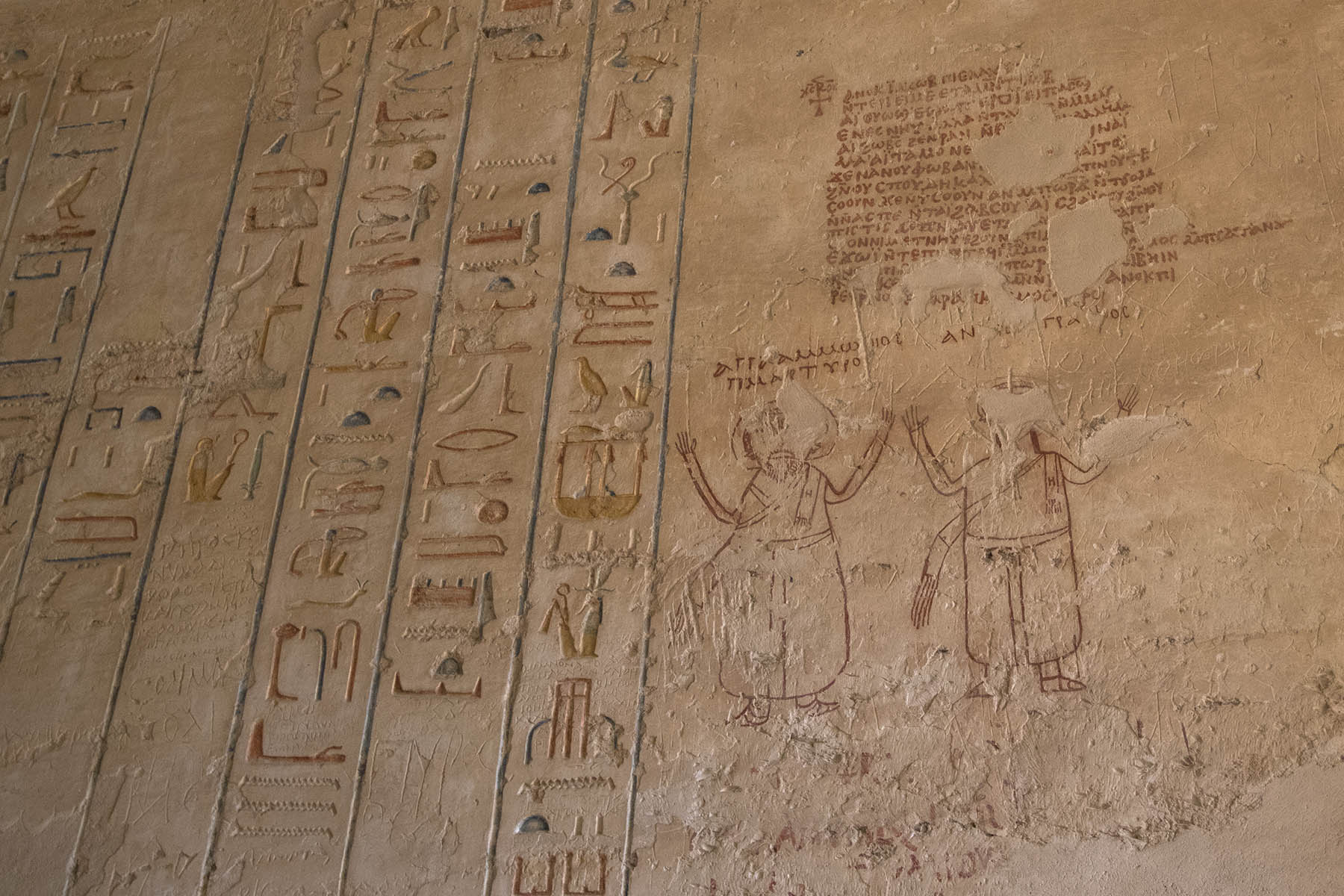 IMG_8281CopticGrafitti Published June 10, 2018 at 1800 × 1200 in Luxor (Part 2) – Valley of the Kings & Temple of Hatshepsut Coptic graffiti on the walls of the tomb of Rameses IV, Valley of the Kings, Luxor