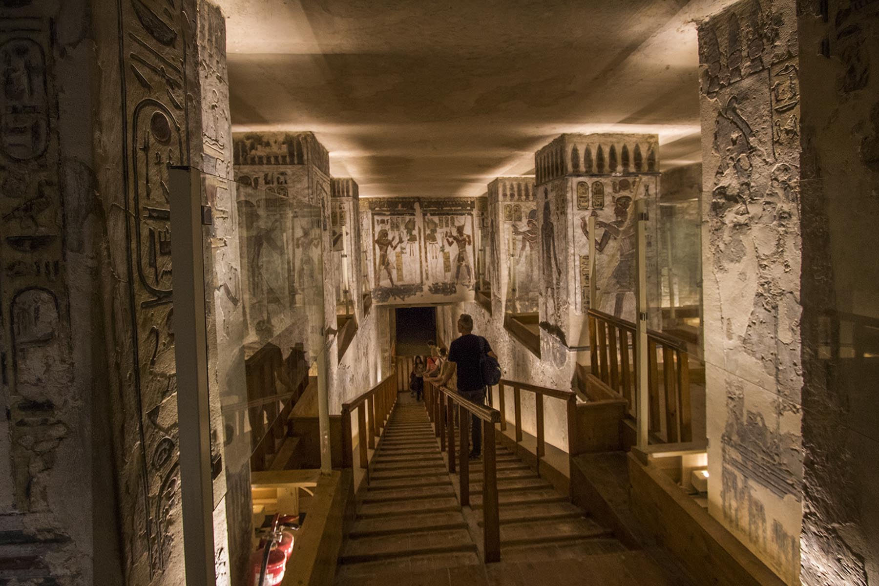 IMG_8361RamII Published June 10, 2018 at 1800 × 1200 in Luxor (Part 2) – Valley of the Kings & Temple of Hatshepsut Descending deeper into the tomb of Rameses III, Valley of the Kings, Luxor