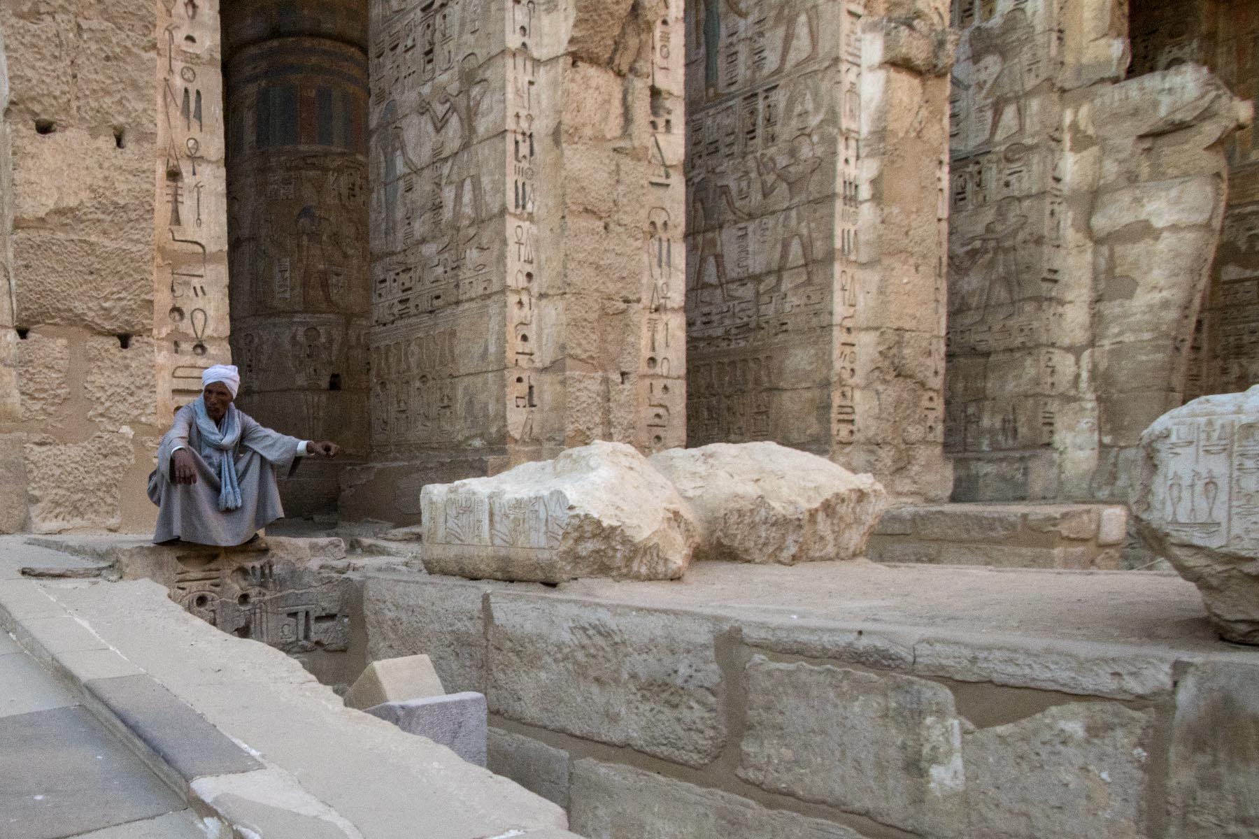 IMG_8681Dude Published June 10, 2018 at 1800 × 1200 in Luxor (Part 2) – Valley of the Kings & Temple of Hatshepsut Local waiting for more tourists at Medinet Habu Temple, Luxor