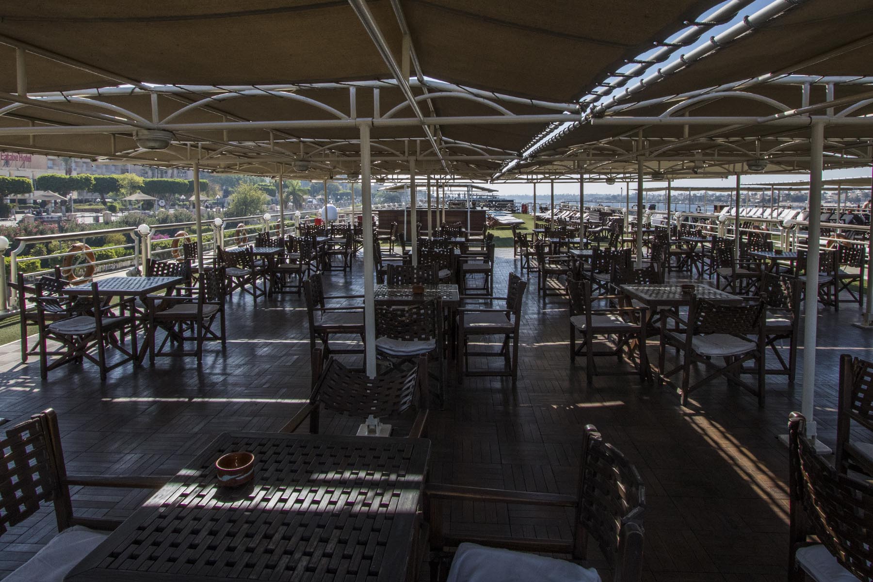 IMG_0388SunDeck Published July 12, 2018 at 1800 × 1200 in Luxor (Part 4) – Karnak Temple & Luxor Museum The shaded section of the sun deck aboard MS Concerto, Egypt