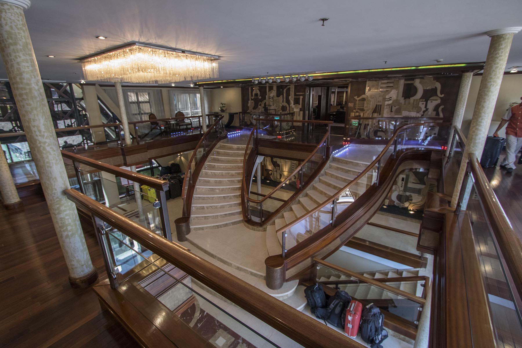 IMG_0413Stairs Published July 12, 2018 at 1800 × 1200 in Luxor (Part 4) – Karnak Temple & Luxor Museum The lobby staircase aboard MS Concerto, Egypt