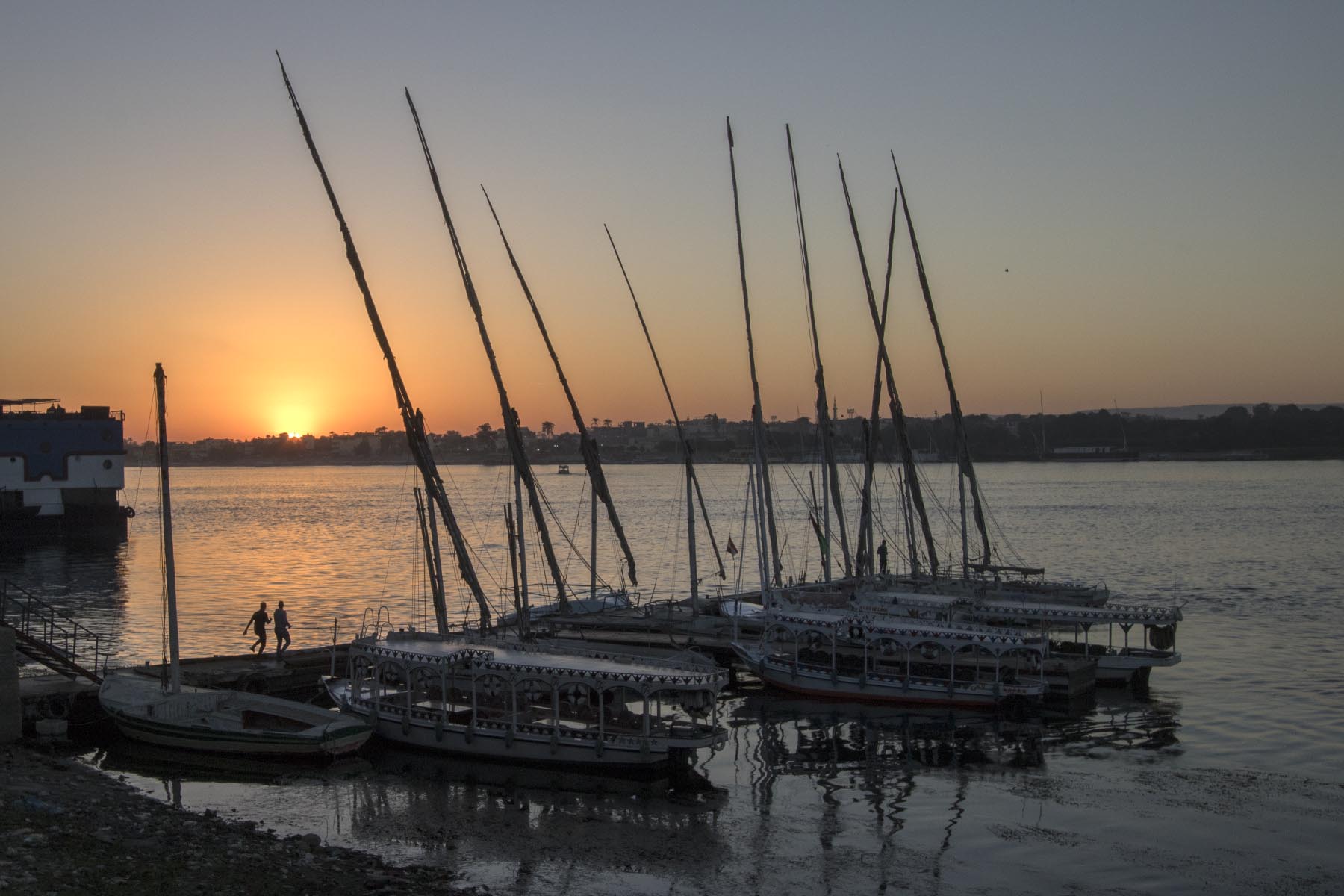 IMG_0596Feluccas Published July 12, 2018 at 1800 × 1200 in Luxor (Part 4) – Karnak Temple & Luxor Museum Closeup of boats at sunset in Luxor