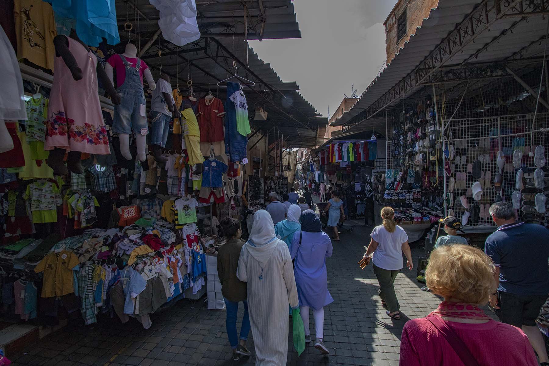 IMG_0593Market Published January 15, 2020 at 1800 × 1200 in Marrakech – city tour and historic hotels Clothing for sale in the Medina, Marrakech