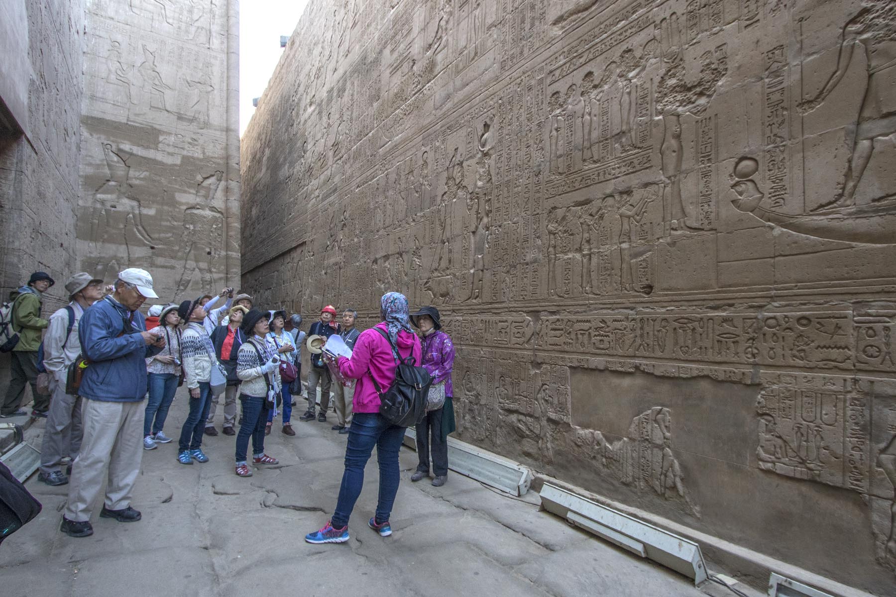IMG_1702EdfuTourists Published July 12, 2018 at 1800 × 1200 in Nile Cruise (Part 1) – Edfu & Kom Ombo Temples Tourist group at the Temple of Horus at Edfu, Egypt