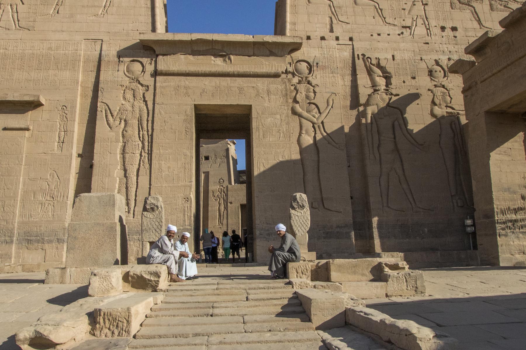 IMG_2607Aswan Published July 13, 2018 at 1800 × 1200 in Nile Cruise (Part 2) – Philae Temple & Nubian Village Men waiting at the entrance to Philae Temple, Egypt