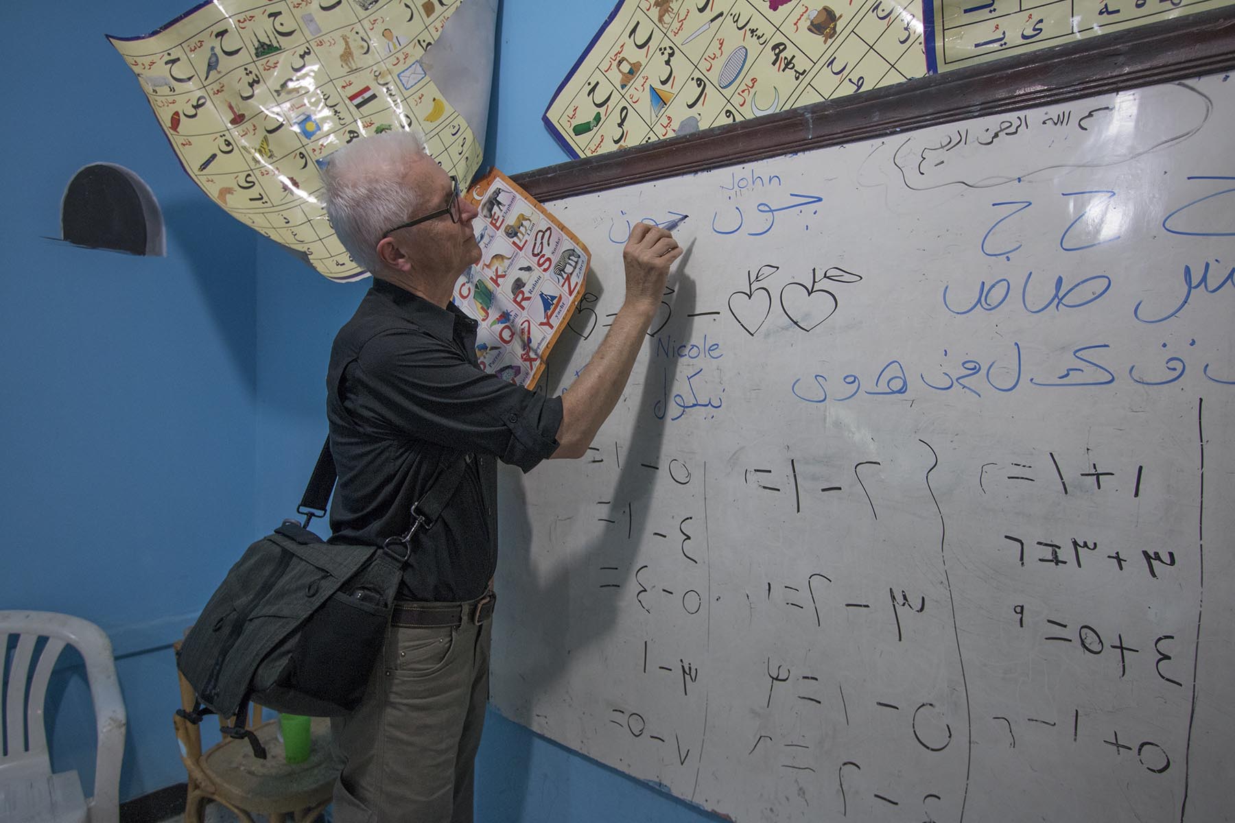 IMG_3078ArabicLesson Published July 14, 2018 at 1800 × 1200 in Nile Cruise (Part 2) – Philae Temple & Nubian Village John having a go at writing in Arabic, Nubian village, Aswan
