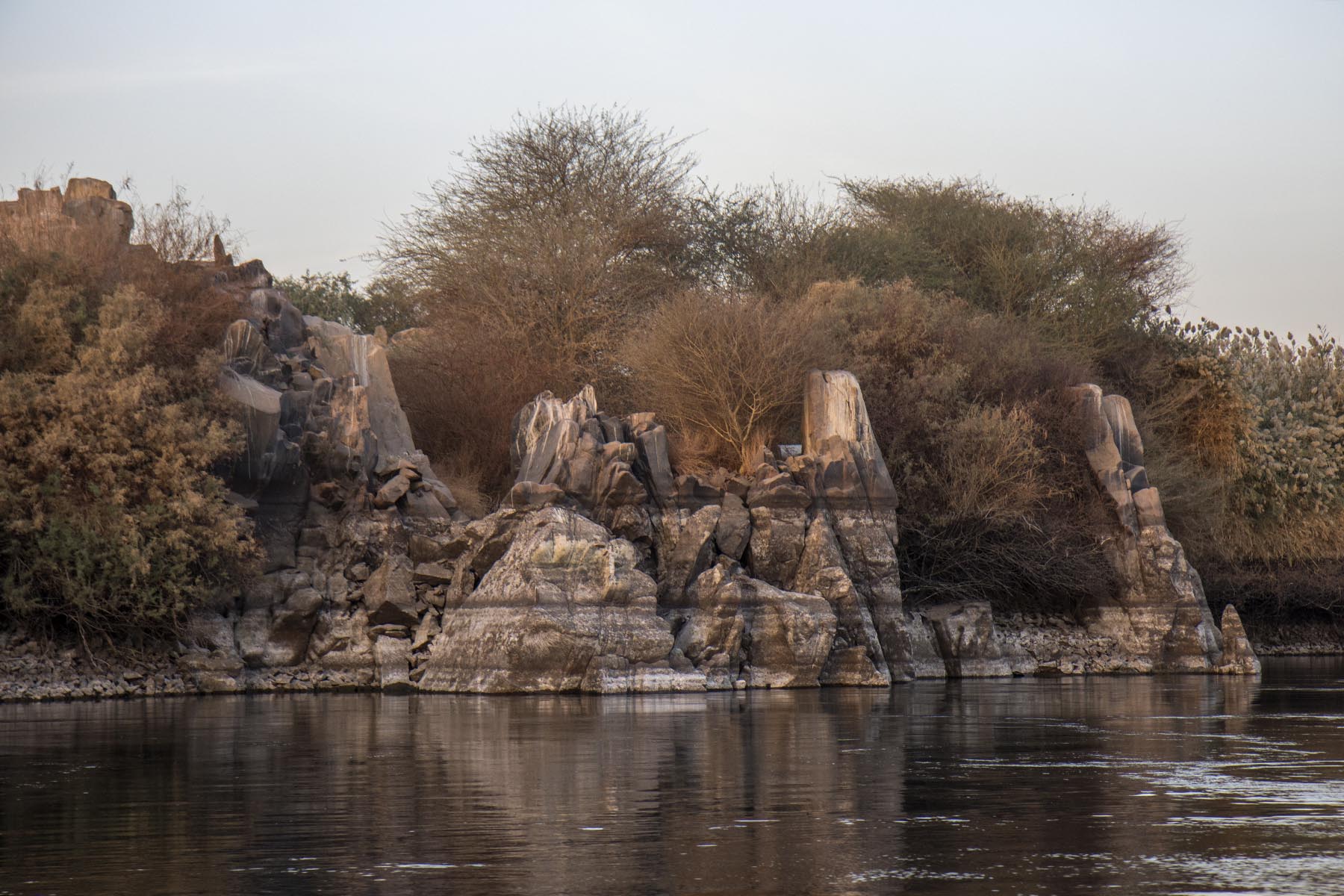 IMG_3116Rocks Published July 14, 2018 at 1800 × 1200 in Nile Cruise (Part 2) – Philae Temple & Nubian Village Water levels marked on the rocks, Nile River, Aswan