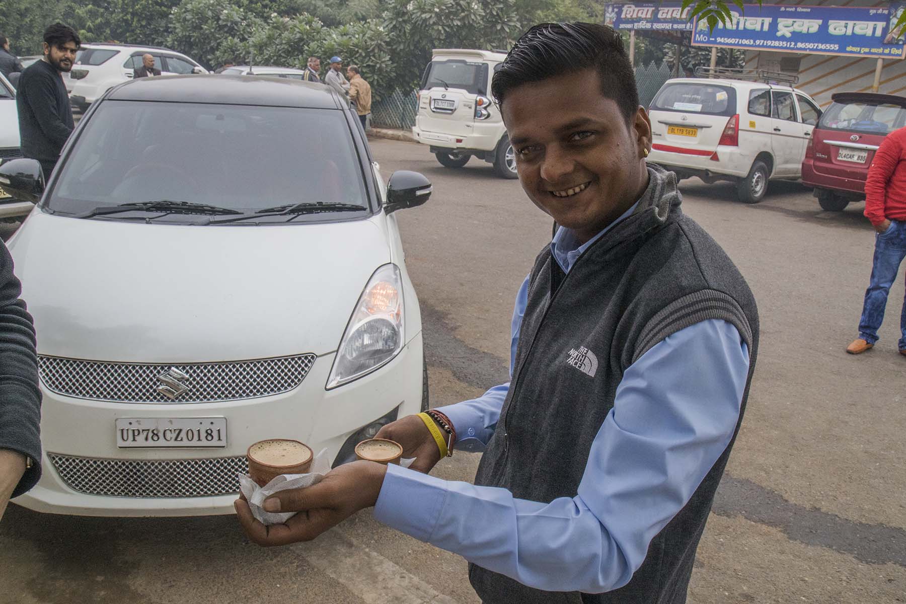 IMG_6451Anand&Chai Published June 24, 2017 at 1800 × 1200 in Agra – Agra Fort, Taj Mahal & Fatehpur Sikri Our driver, Anand, with our chai tea, India