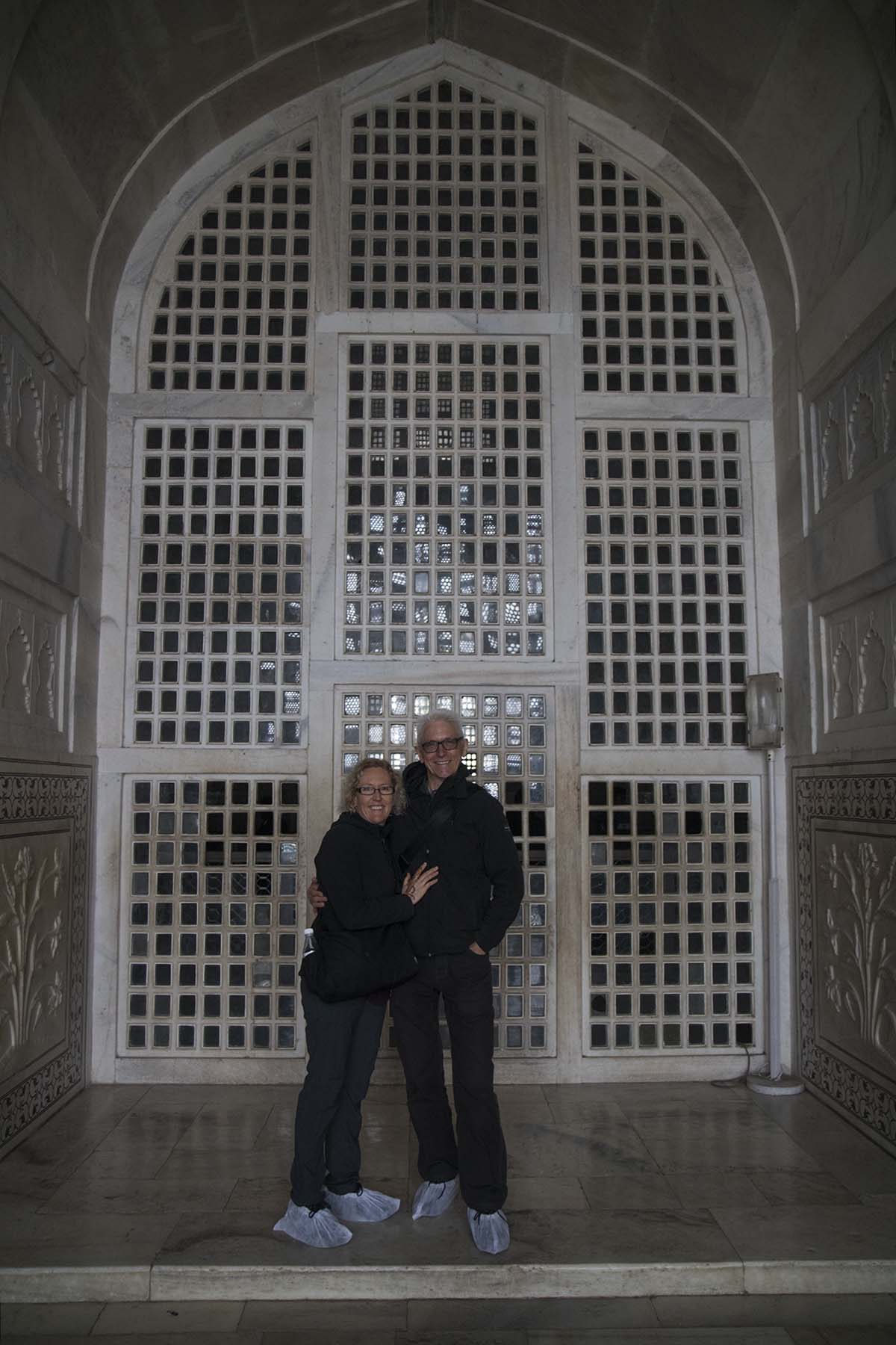 IMG_6956ItsCold Published June 24, 2017 at 1200 × 1800 in Agra – Agra Fort, Taj Mahal & Fatehpur Sikri Nic and John in their jumpers and booties, Taj Mahal, Agra, India