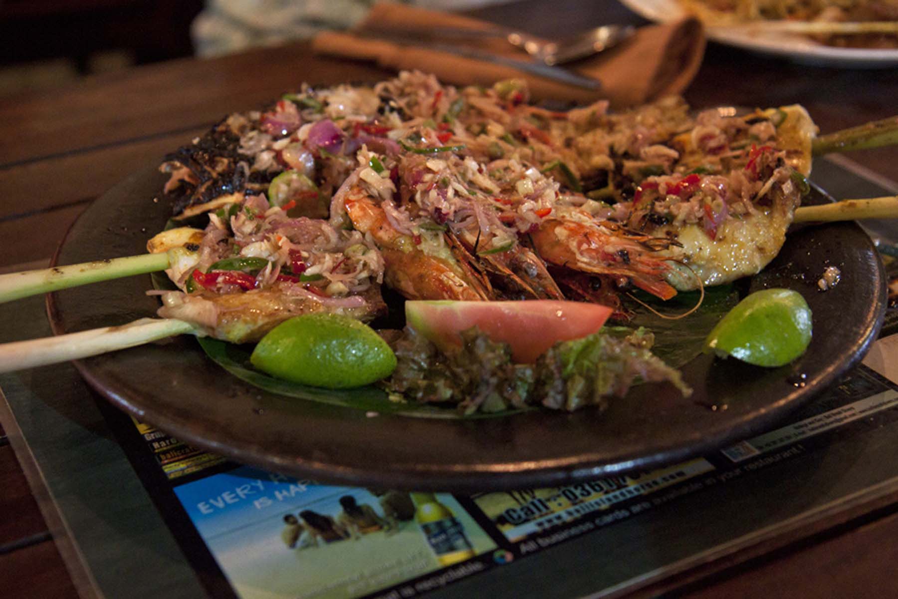 IMG_1286Prawnage Published April 15, 2014 at 1800 × 1200 in Bali – Settling in to Seminyak BBQ seafood platter at Sate Bali, Seminyak