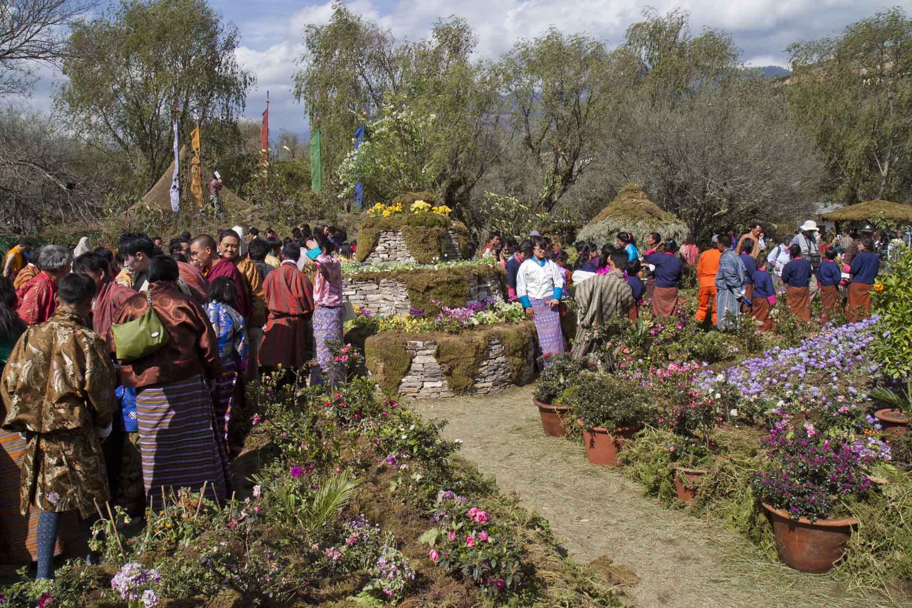 IMG_2194LoadsOfFlowers Published January 20, 2016 at 1800 × 1200 in Bhutan (Part 2) – Paro’s Tsechu Festival Crowds building at the flower show, Paro, Bhutan
