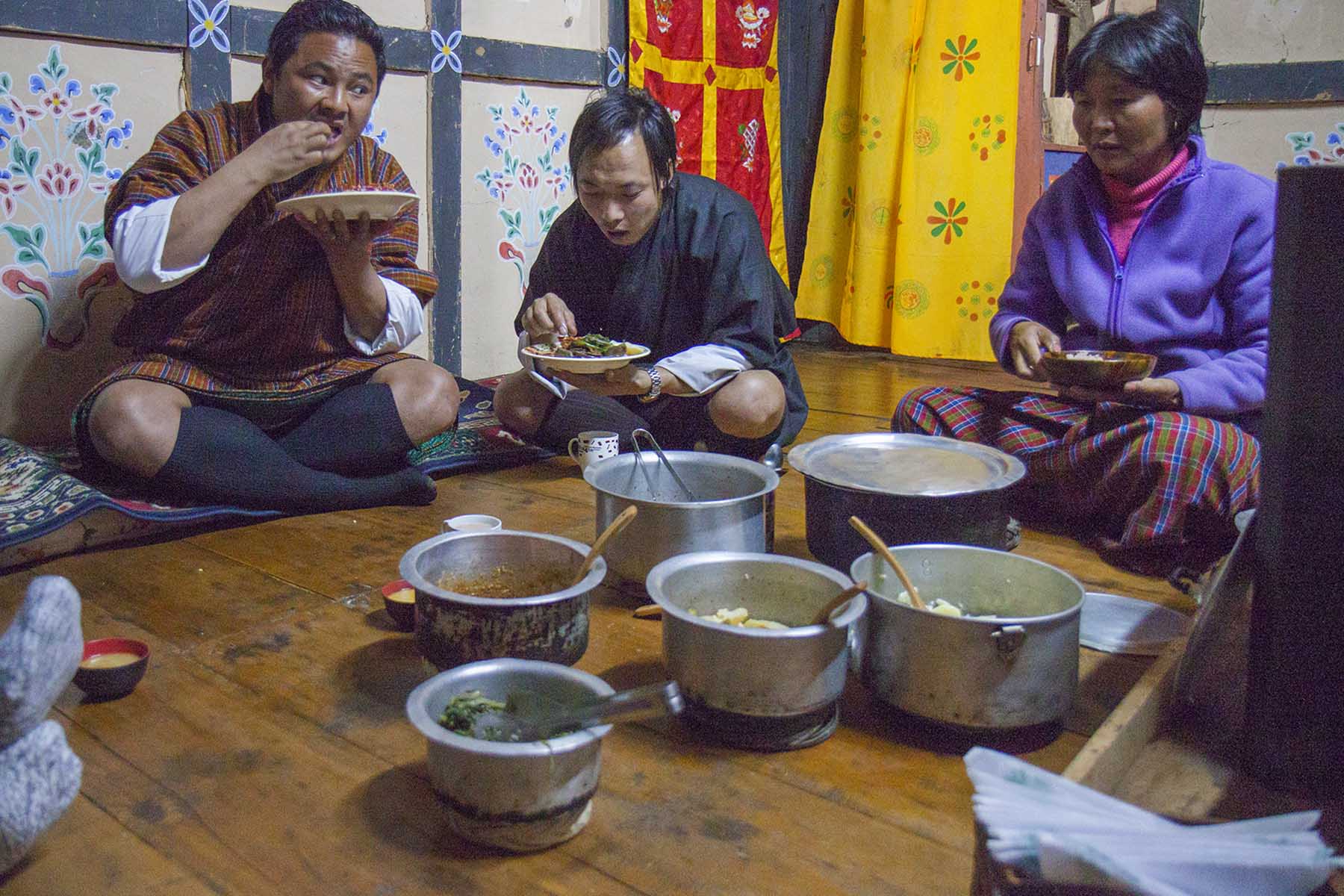 IMG_2325Dining Published January 21, 2016 at 1800 × 1200 in Bhutan (Part 2) – Paro’s Tsechu Festival Digging in – delicious dinner at Bhutanese farmhouse