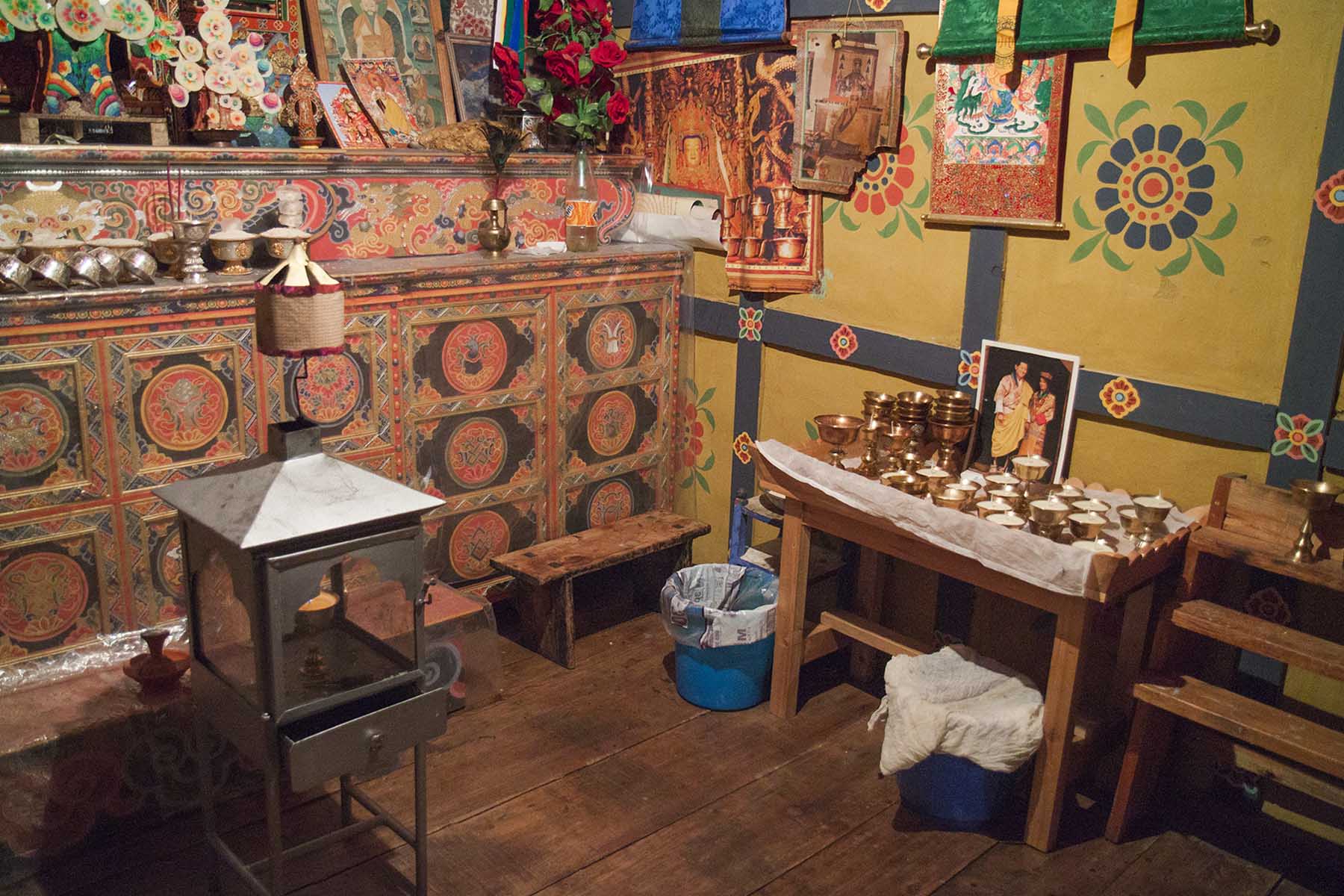 IMG_2329ShrineRoom Published January 21, 2016 at 1800 × 1200 in Bhutan (Part 2) – Paro’s Tsechu Festival Butterlamps ready for lighting, farmhouse shrine, Bhutan