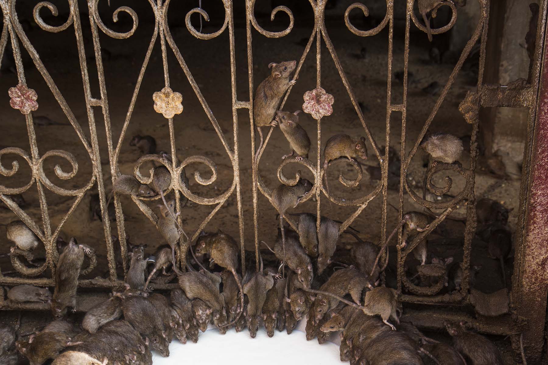 IMG_2804RatsOnRailings Published September 14, 2017 at 1800 × 1200 in Bikaner, Rajasthan Rats on the railing at Karni Mata Rat Temple, Bikaner, Rajasthan
