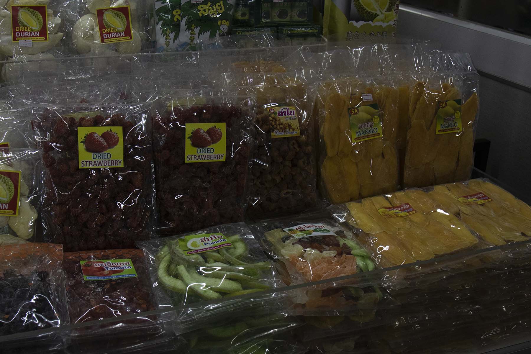 IMG_0437Mango Published September 22, 2019 at 1800 × 1200 in Chiang Mai (Part 1) – Arrival and Initial Explorations Dried strawberries and mangos, Warorot Market, Chiang Mai, Thailand