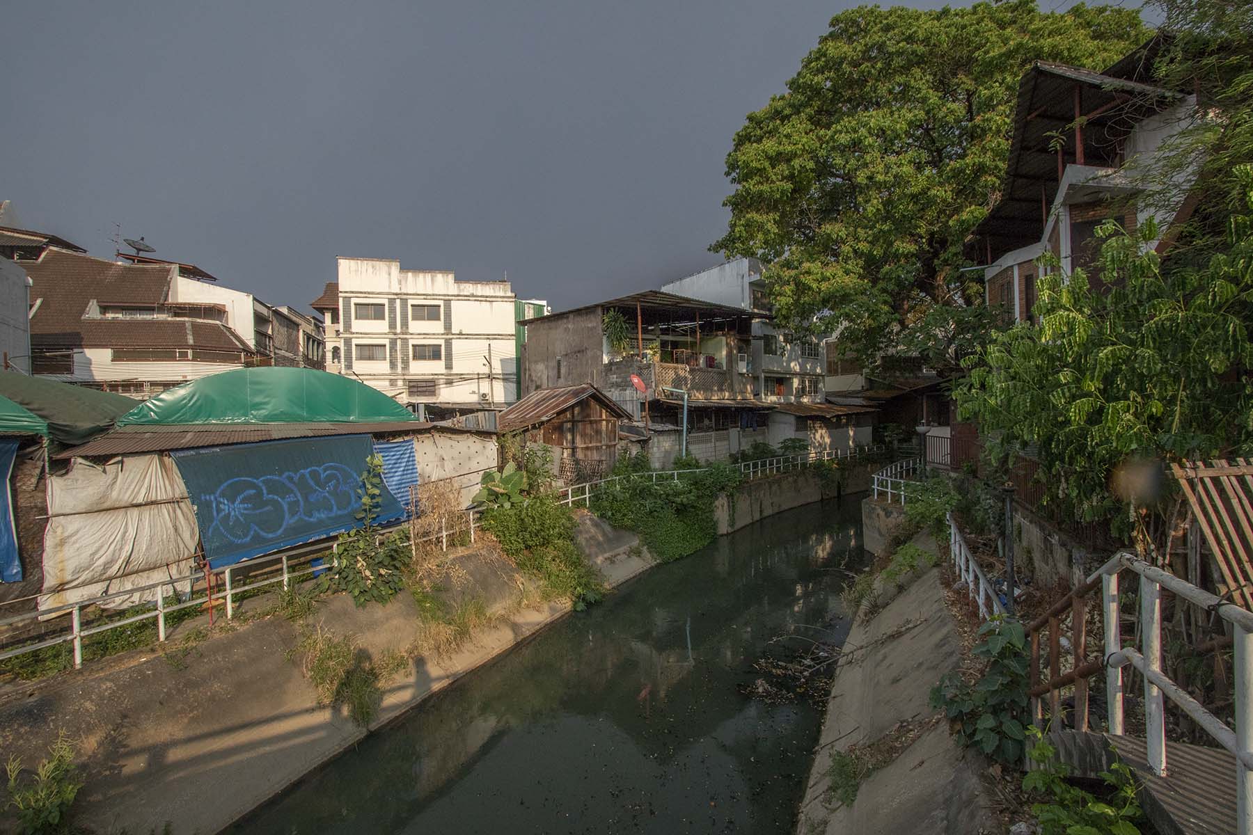 IMG_0614-2Canal Published September 24, 2019 at 1800 × 1200 in Chiang Mai (Part 1) – Arrival and Initial Explorations Canal and makeshift housing, Chiang Mai, Thailand