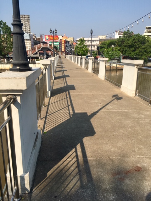 IMG_7153 Published September 25, 2019 at 480 × 640 in Chiang Mai (Part 1) – Arrival and Initial Explorations Morning shadows on the pedestrian bridge, Chiang Mai, Thailand