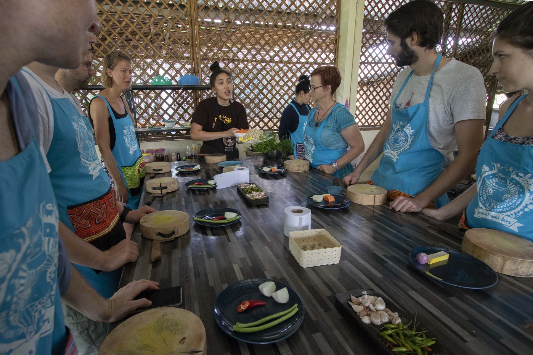 IMG_1558Prep Published September 28, 2019 at 1800 × 1200 in Chiang Mai (Part 3) – Cooking School and Elephants Listening to prep instructions, Mama Noi Cookery School, Chiang Mai