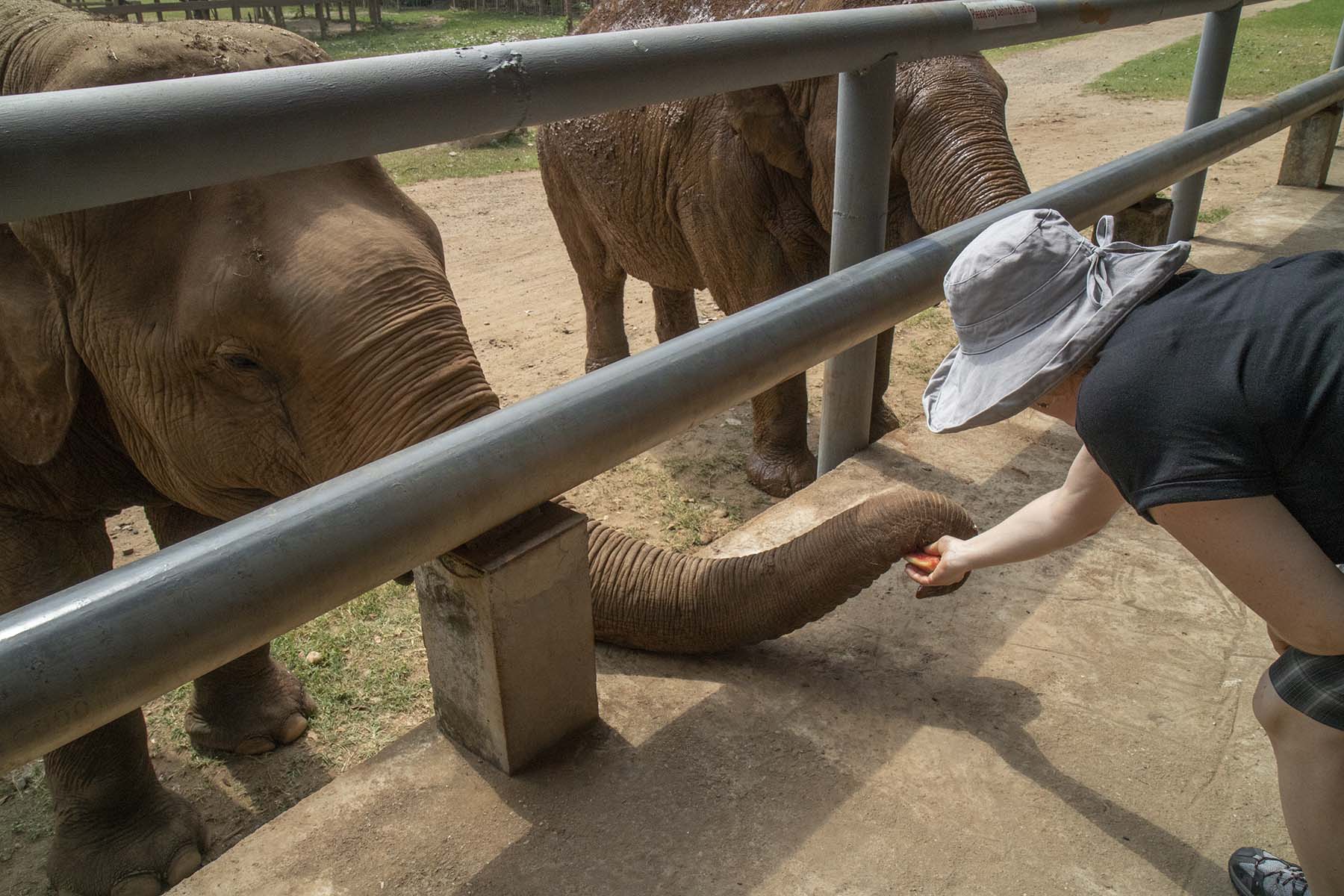IMG_1827Nic&Ele Published September 28, 2019 at 1800 × 1200 in Chiang Mai (Part 3) – Cooking School and Elephants Nic feeding an elephant at Elephant Nature Park, Chiang Mai, Thailand