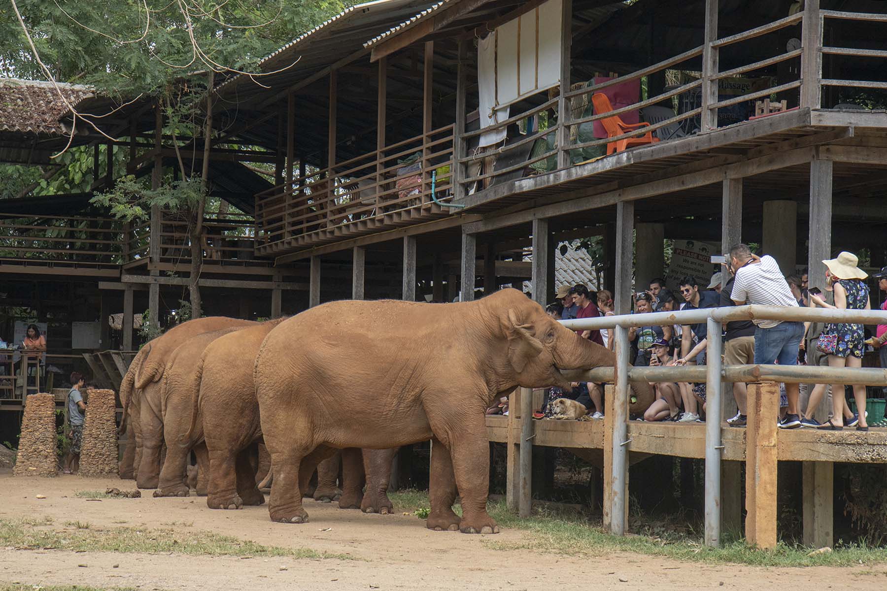 IMG_1855Rails Published September 28, 2019 at 1800 × 1200 in Chiang Mai (Part 3) – Cooking School and Elephants Trunks through the rails for food, Elephant Nature Park, Chiang Mai, Thailand