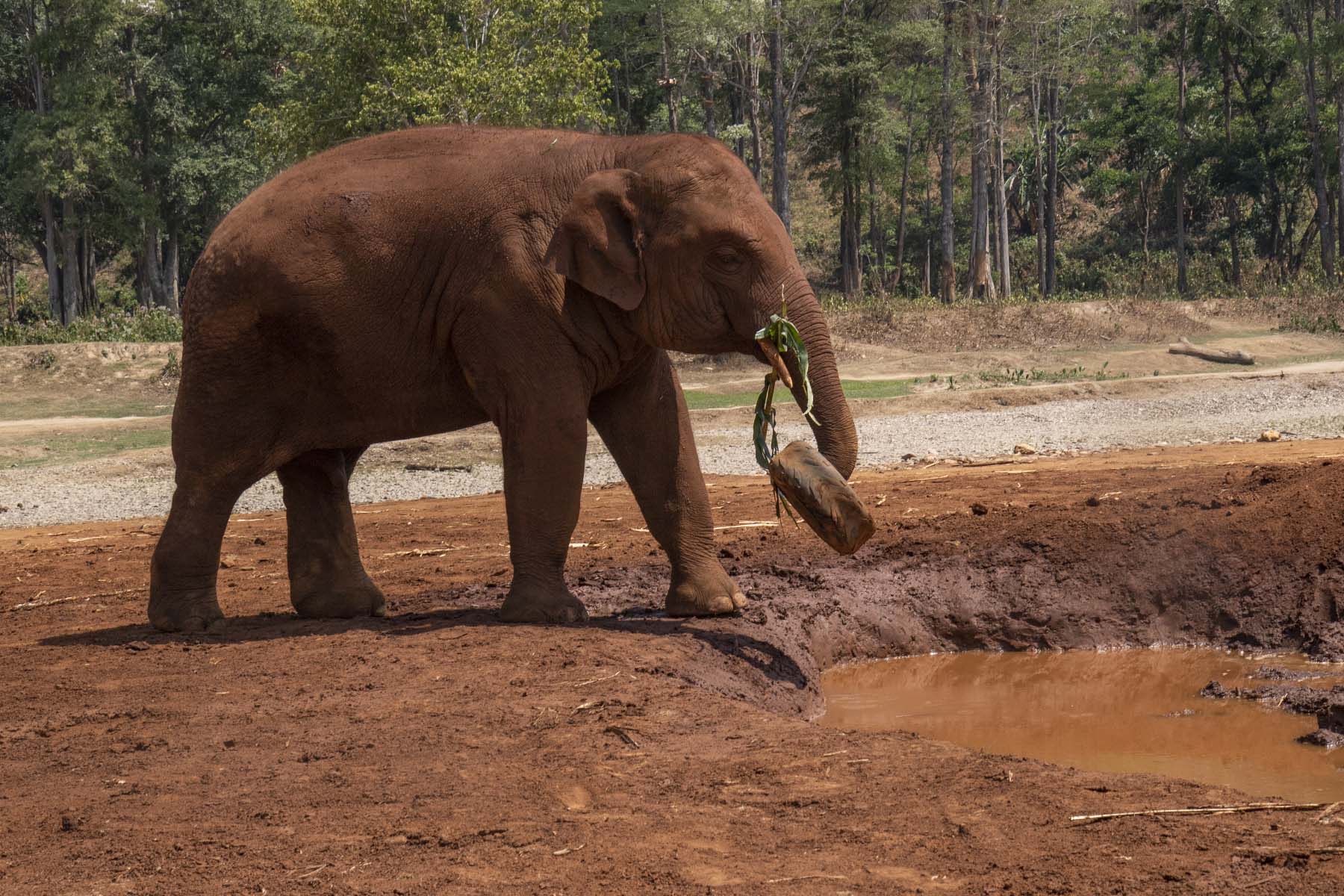 IMG_2066TyreToy Published September 28, 2019 at 1800 × 1200 in Chiang Mai (Part 3) – Cooking School and Elephants Baby boy and toy tyre at Elephant Nature Park, Chiang Mai, Thailand