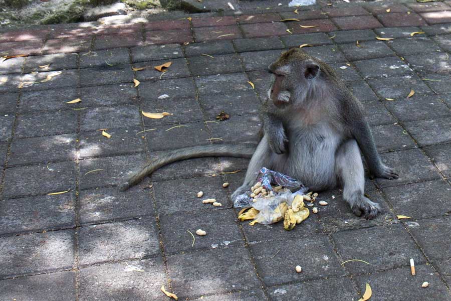IMG_8935FullMonkey Published April 17, 2014 at 900 × 600 in Day trip to Nusa Dua & Ulu Watu Very full macaque monkey at Pura Luhur Ulu Watu
