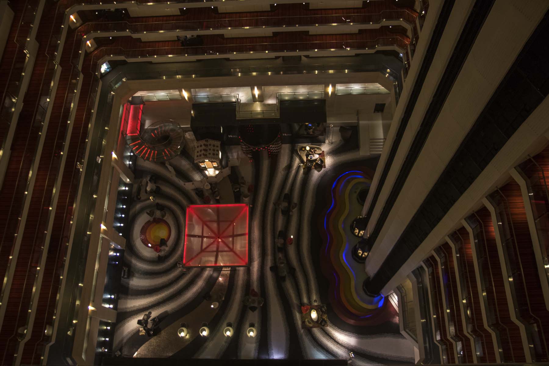 IMG_4748LeMeridiemAtrium Published June 21, 2017 at 1800 × 1200 in Delhi (Part 1) – Old Delhi Looking down into the lobby from our floor at Le Meridien Hotel, Delhi, India