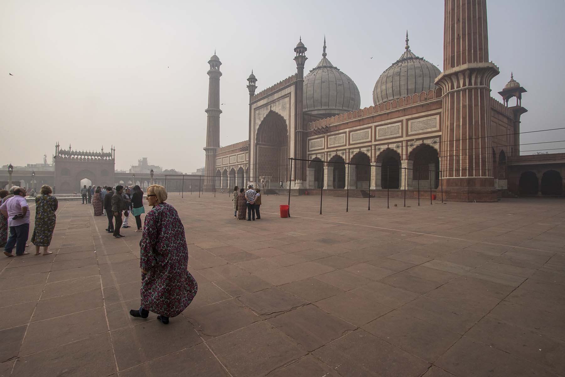IMG_4830NicBegowned Published June 21, 2017 at 1800 × 1200 in Delhi (Part 1) – Old Delhi Nic draped in the make-shift kaftan, Jama Masjid, Delhi, India