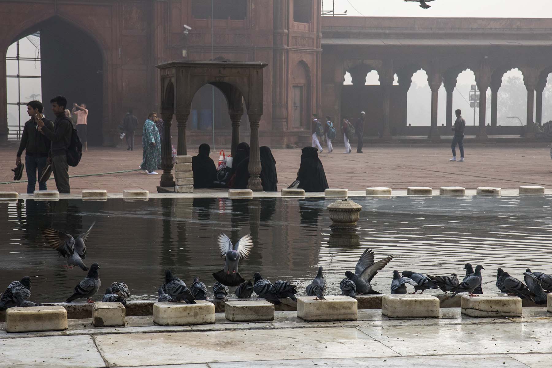 IMG_4851Pigeons Published June 21, 2017 at 1800 × 1200 in Delhi (Part 1) – Old Delhi Pigeons and women waiting, Jama Masjid, Delhi, India