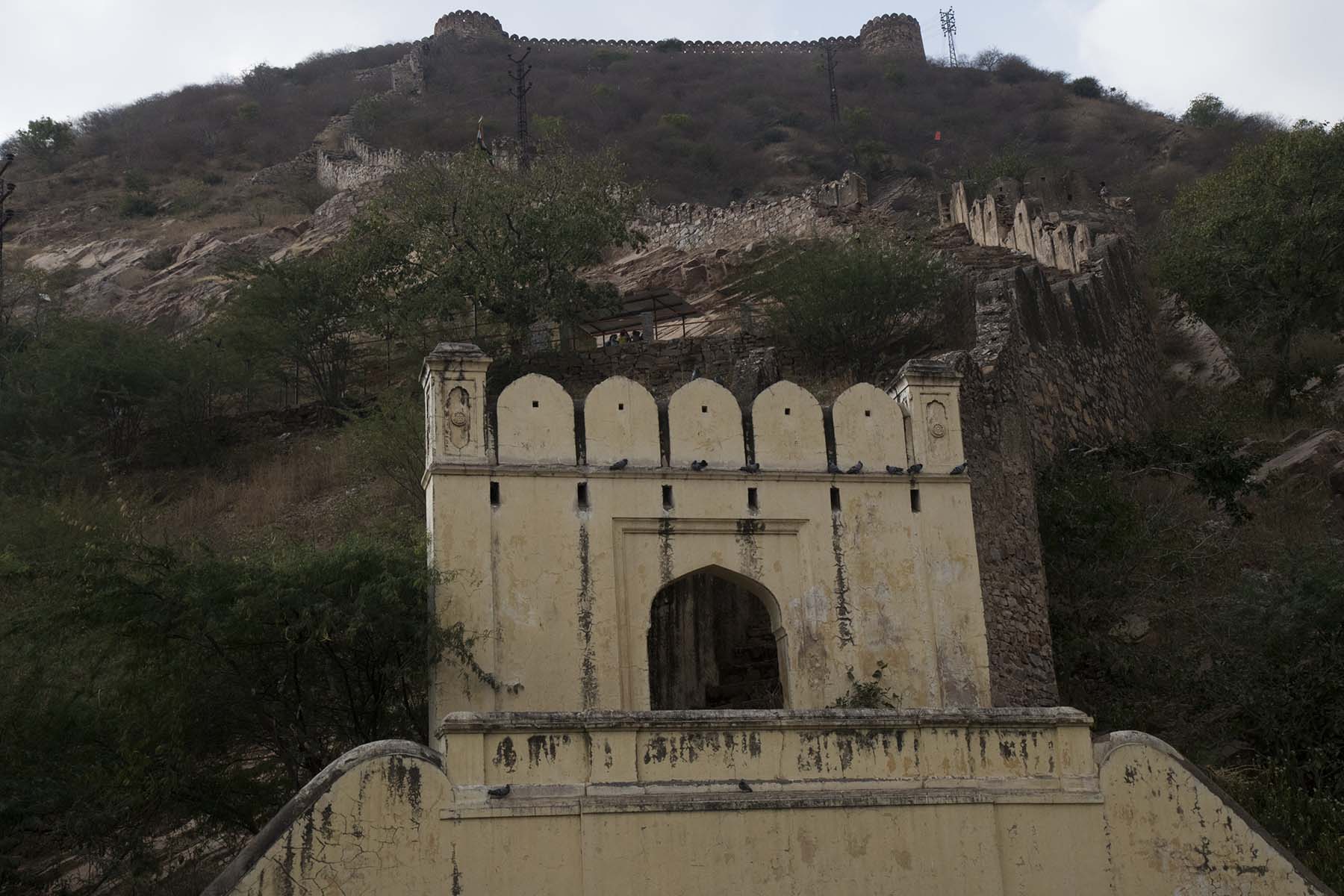 IMG_0336GreatWall Published August 10, 2017 at 1800 × 1200 in Jaipur (Part 2) – City Palace, Albert Hall & Royal Gaitor The view of the wall of Amber City from the Royal Gaitor, Jaipur