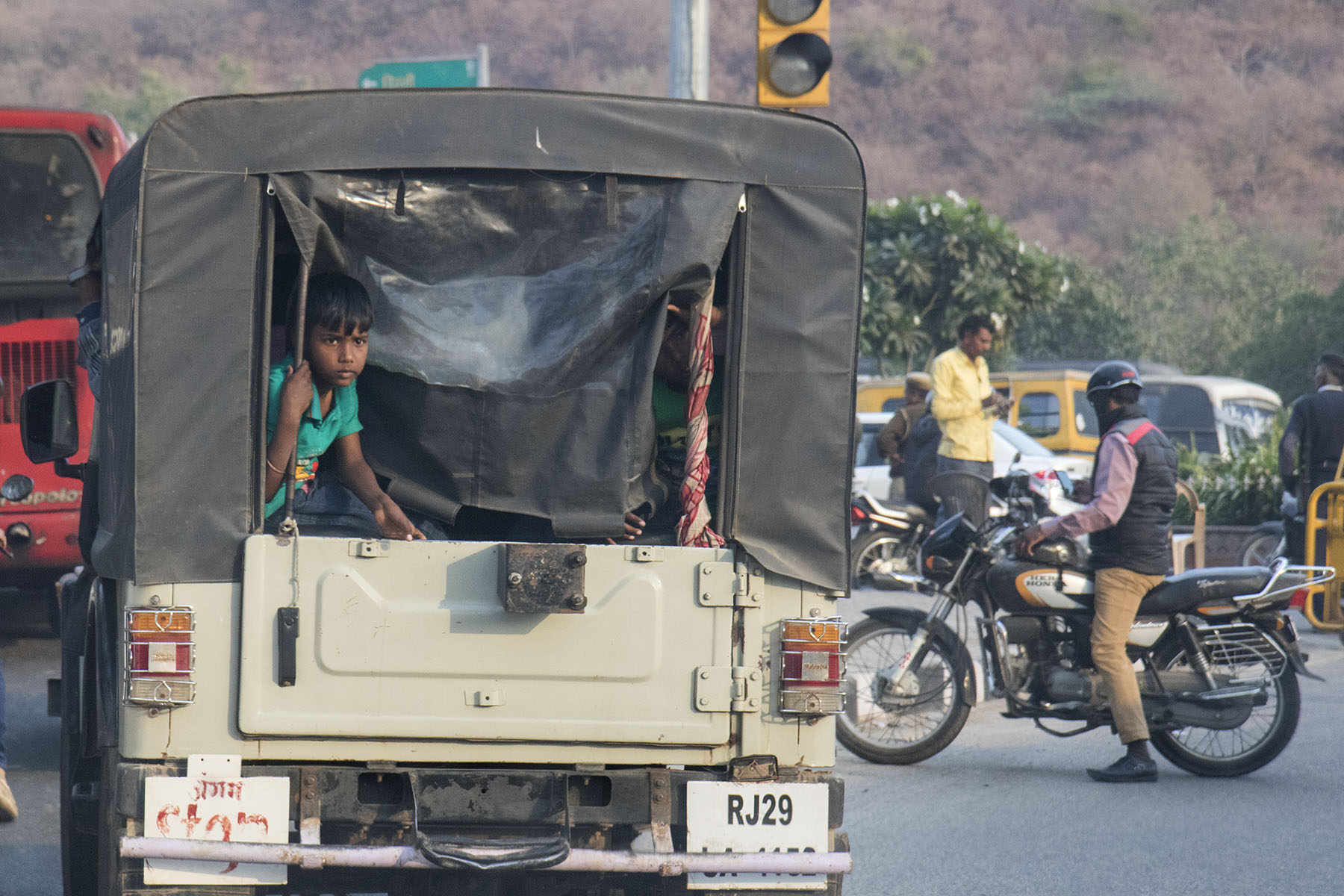 IMG_0486Passenger Published August 10, 2017 at 1800 × 1200 in Jaipur (Part 2) – City Palace, Albert Hall & Royal Gaitor Passenger peaking out of truck, Jaipur