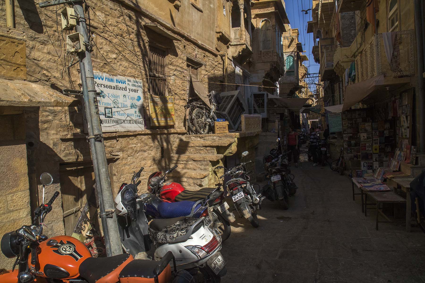 IMG_4250Street Published November 11, 2017 at 1800 × 1200 in Jaisalmer, Rajasthan Parked bikes in Jaisalmer, Rajasthan