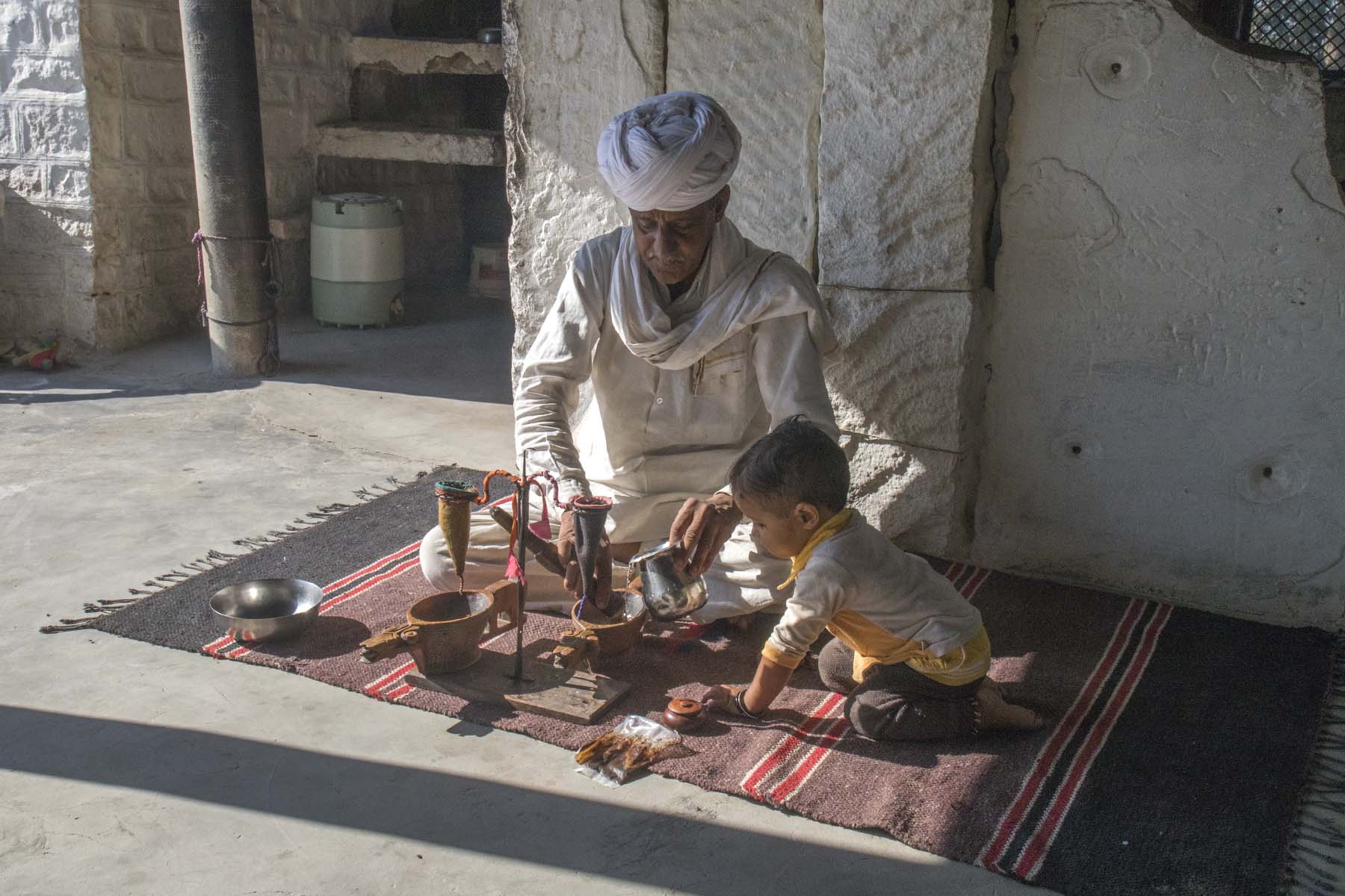 IMG_6212MakingOpium Published November 18, 2017 at 1800 × 1200 in Jodhpur, Rajasthan Mixing the concoction with assistance from his granddaughter, Guda Vishnoyan, Rajasthan