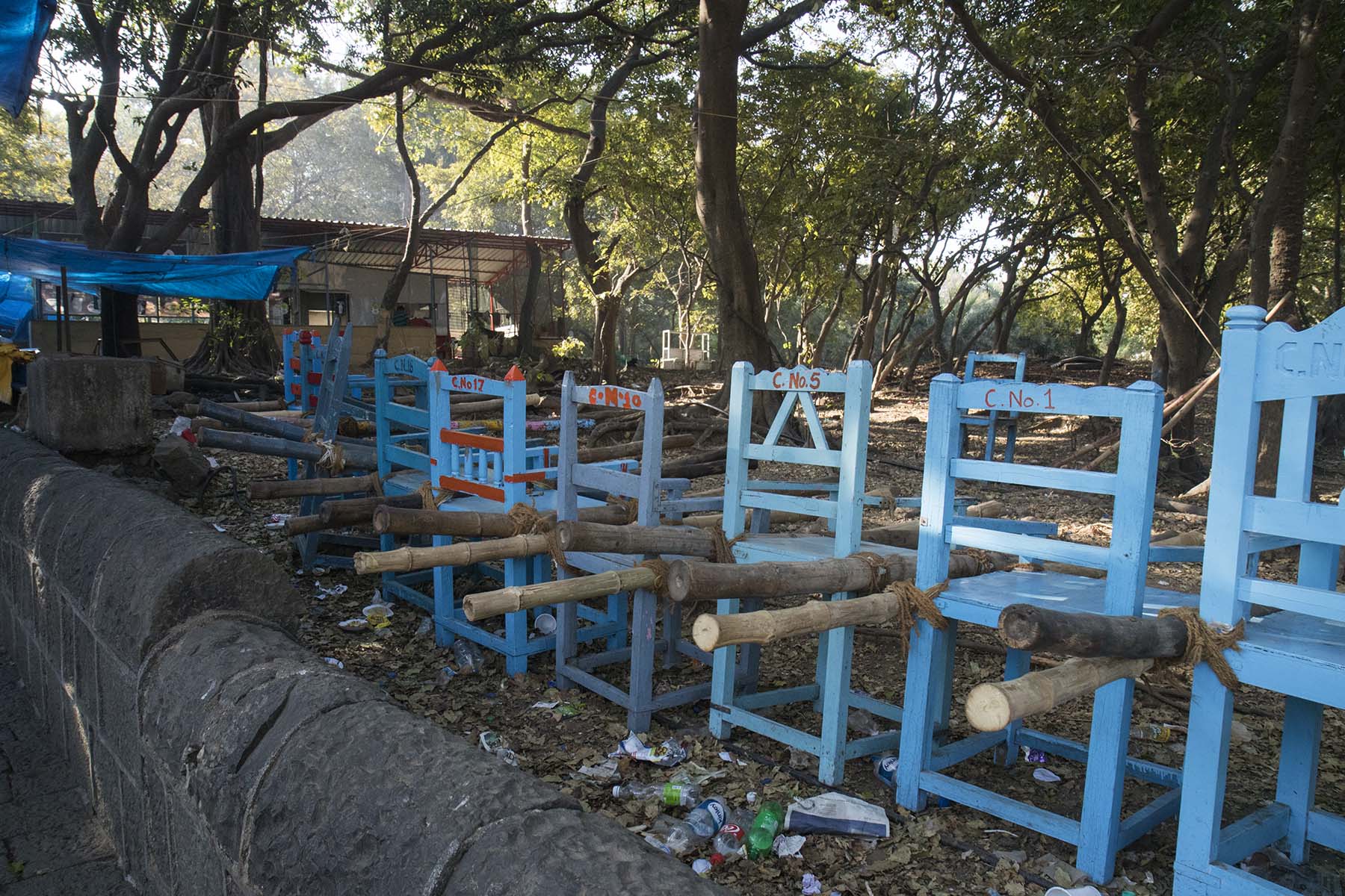 IMG_0655CarryChairs Published November 28, 2017 at 1800 × 1200 in Mumbai, India Empty carry chairs waiting for the rush hour, Elephanta Island