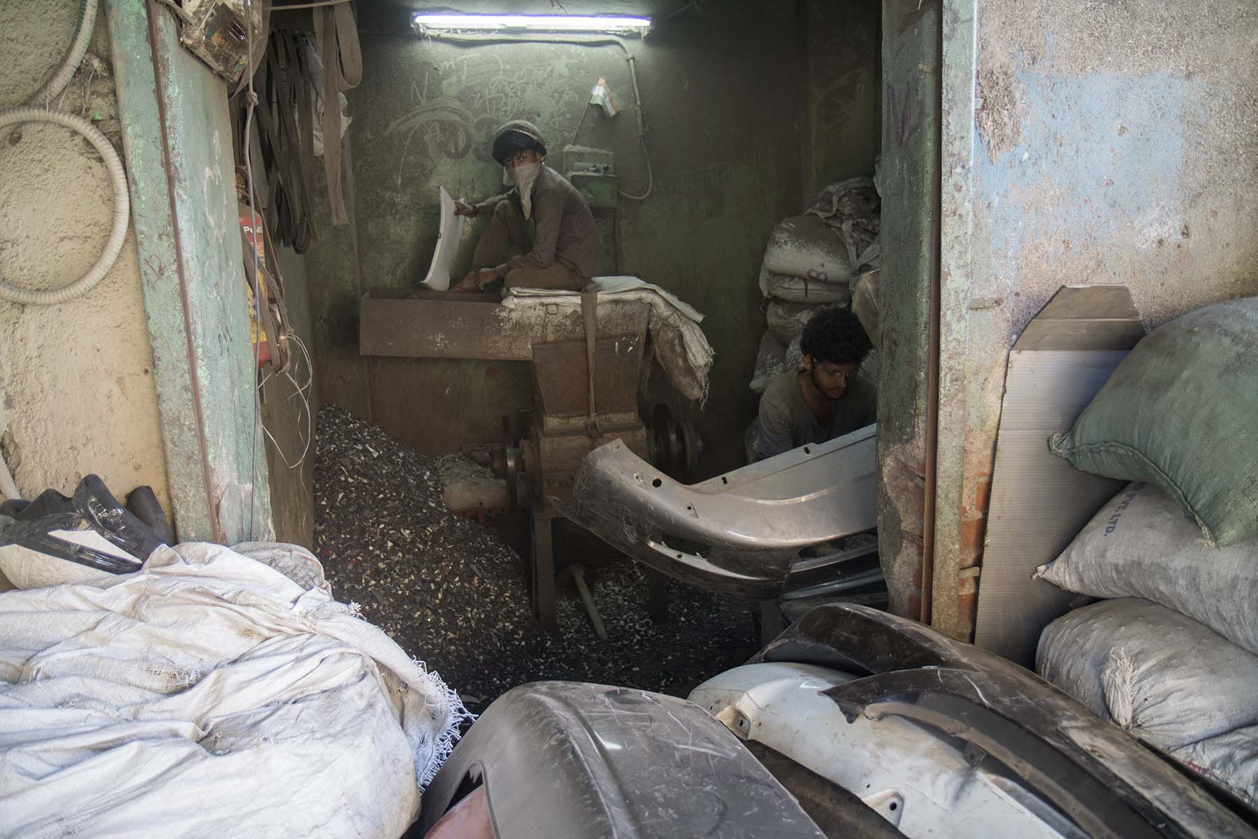 IMG_1672ChoppongBumpers Published November 29, 2017 at 1800 × 1200 in Mumbai, India Chopping plastic car bumpers, Dharavi, Mumbai